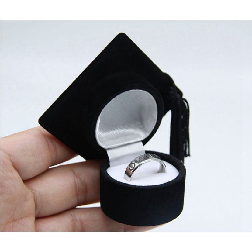 毕业戒指学士帽戒指盒大学生黑色博士帽纪念戒指校园礼品珍藏留念