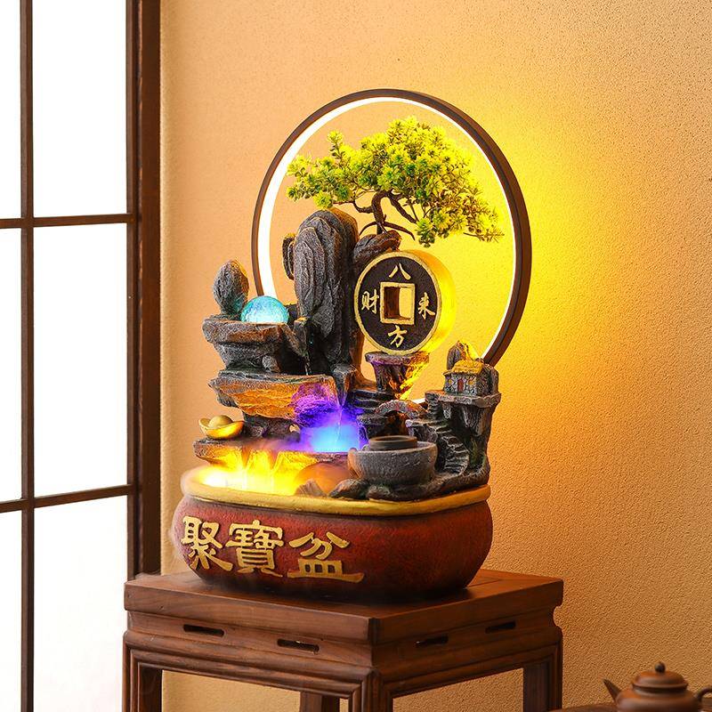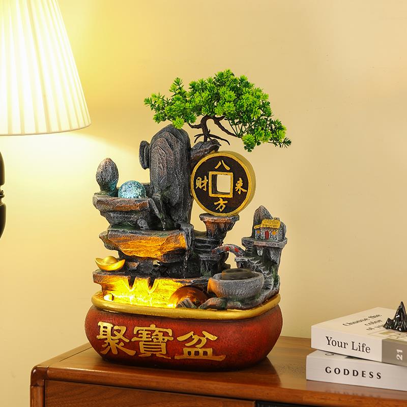 招财聚宝盆循环假山流水喷泉风水轮鱼缸加湿器办公室桌面客厅摆件