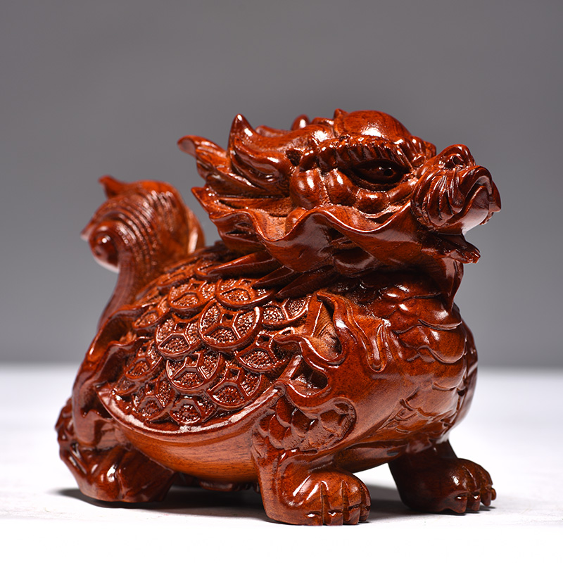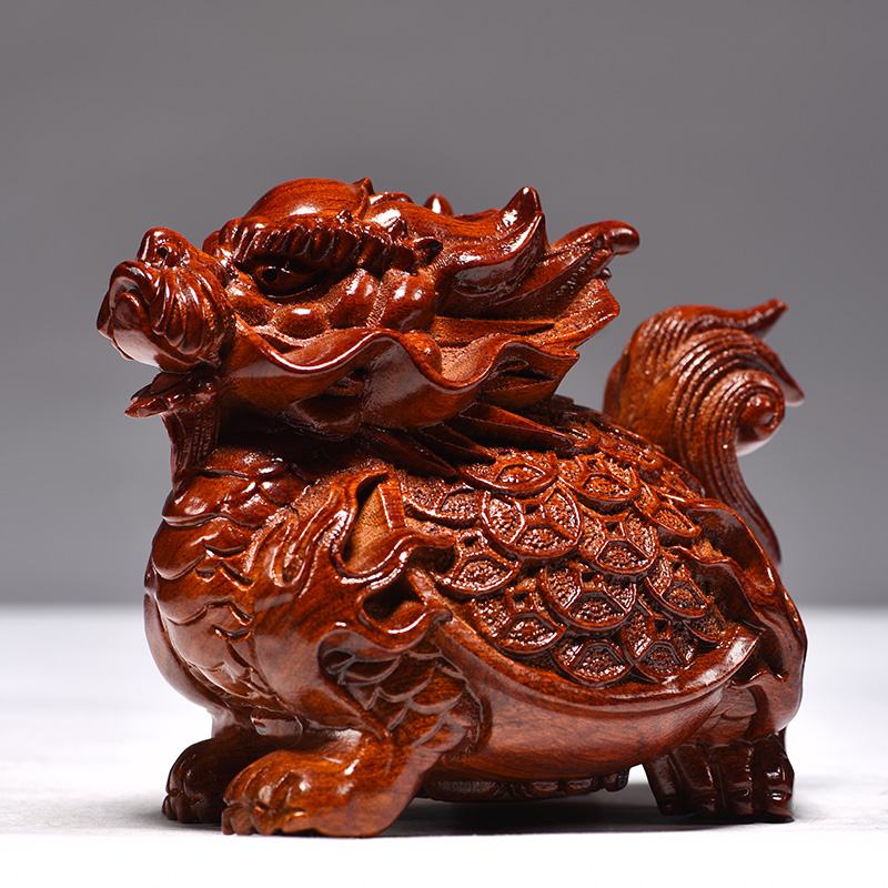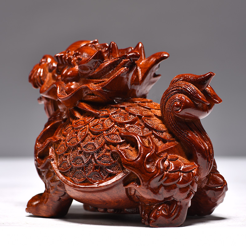 花梨木制龙龟摆件实木雕刻金钱龟八卦龙头龟祝寿家居客厅装饰摆设