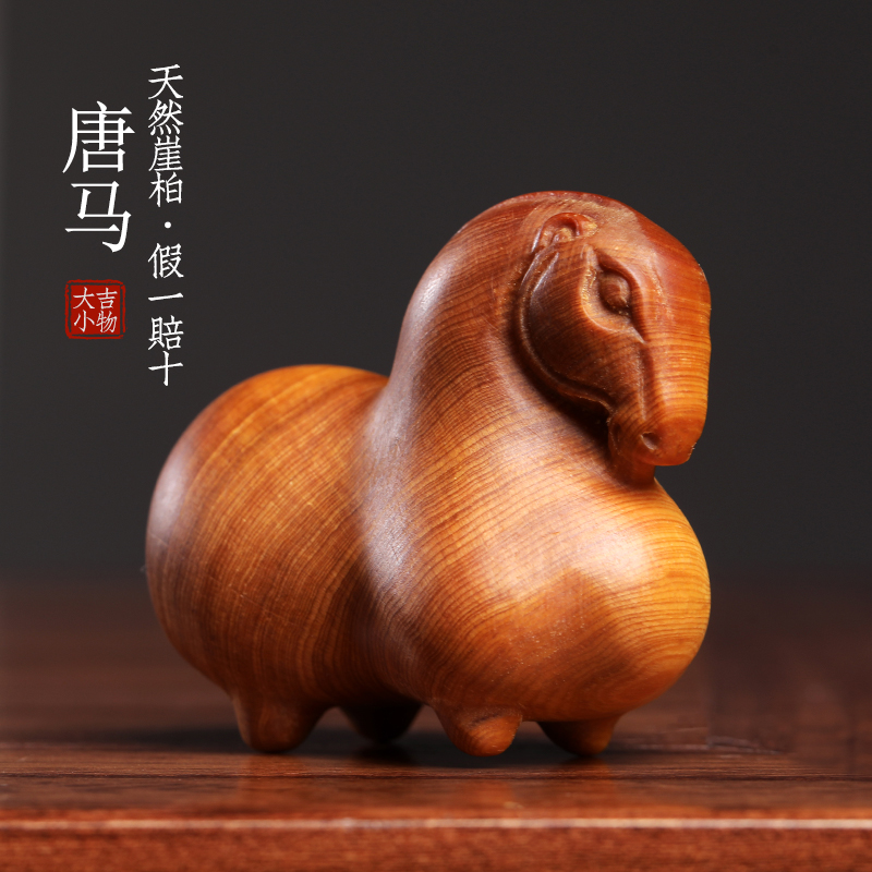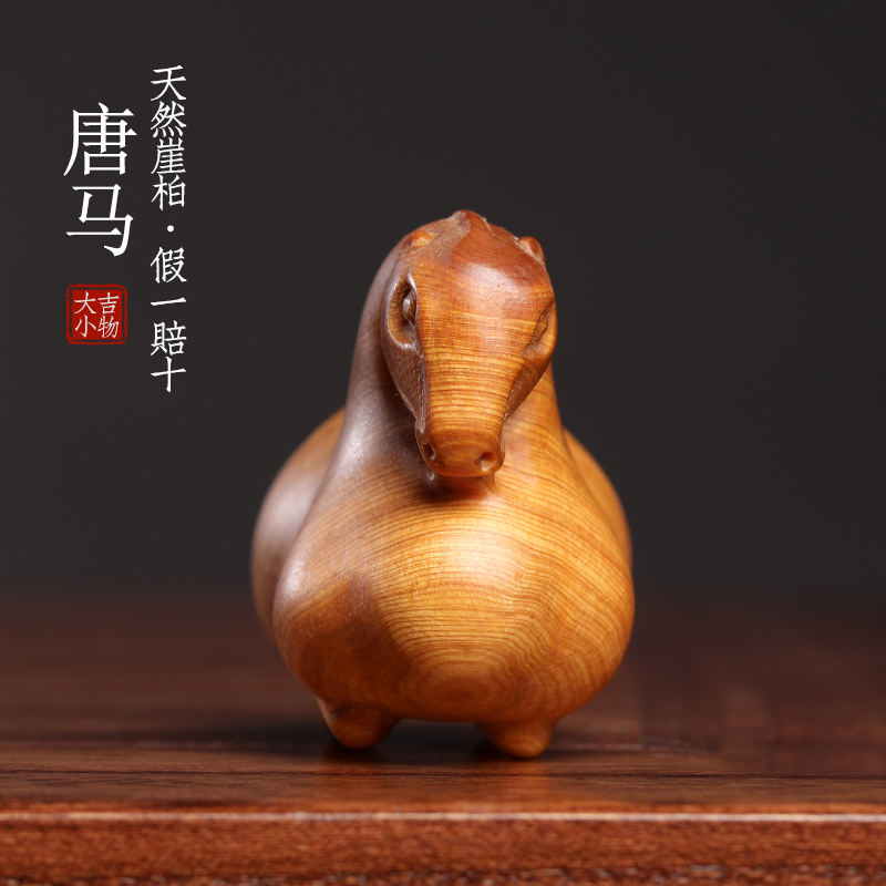 天然太行崖柏手工实木木雕刻唐马生肖马到成功文玩手把件小马摆件