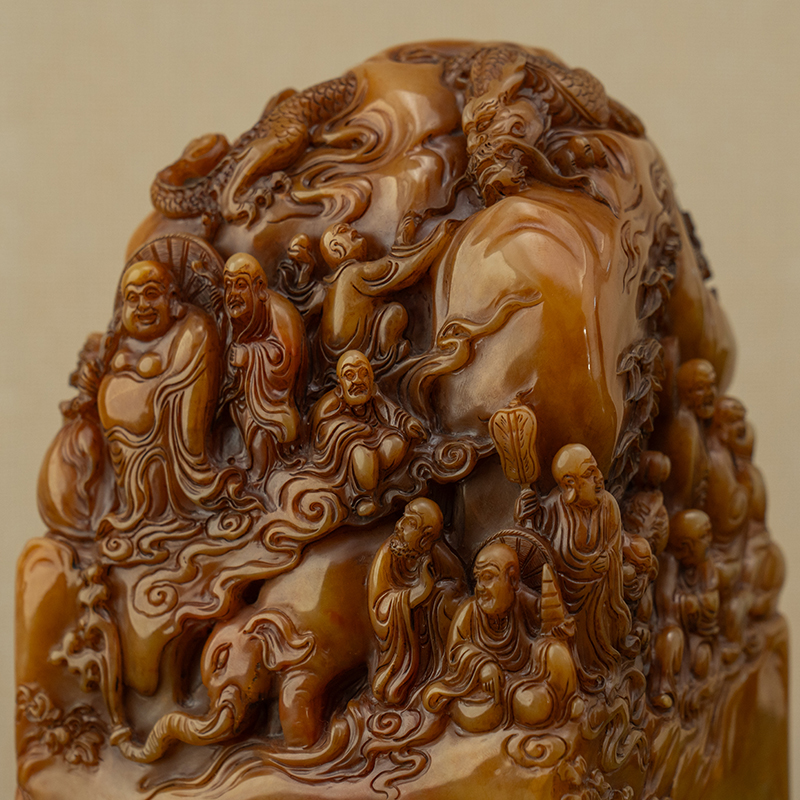 清代 寿山石雕十八罗汉印章山子摆件文玩古董收藏印章摆件 5088g