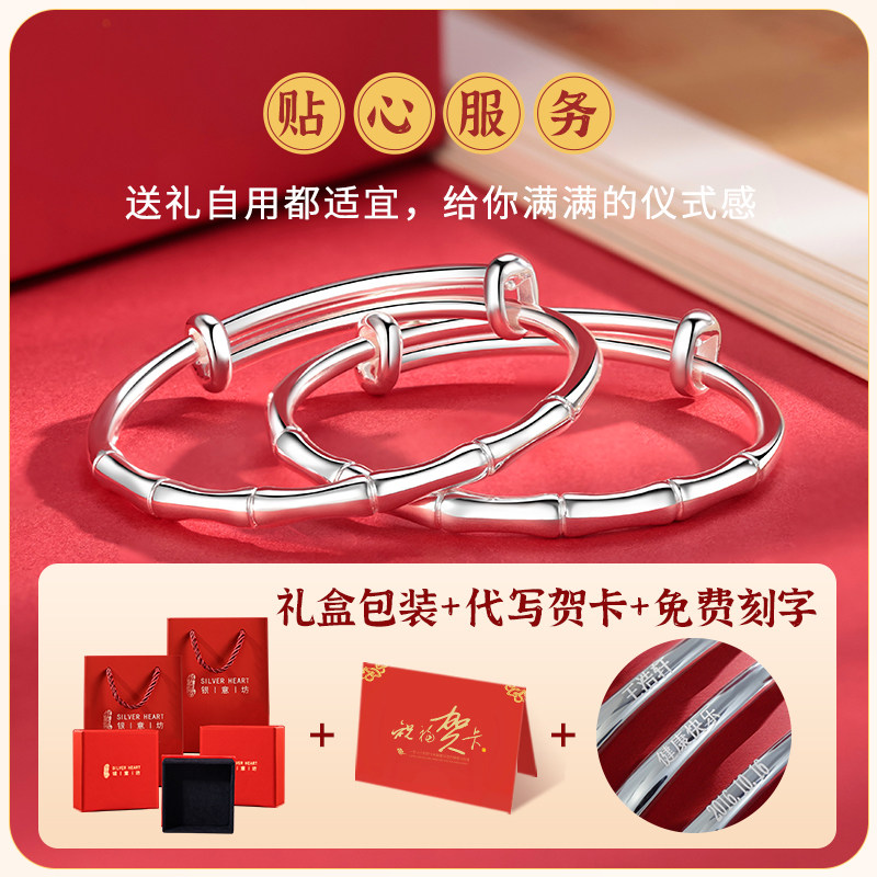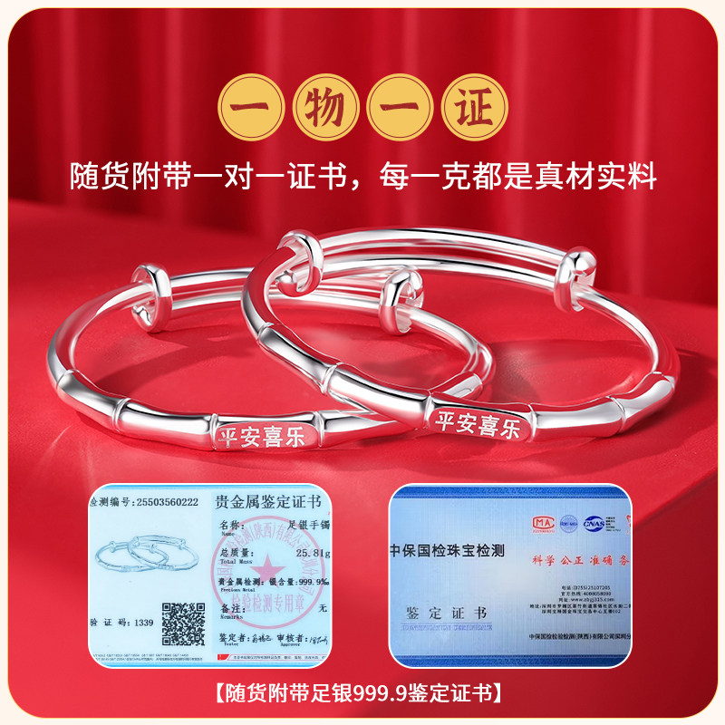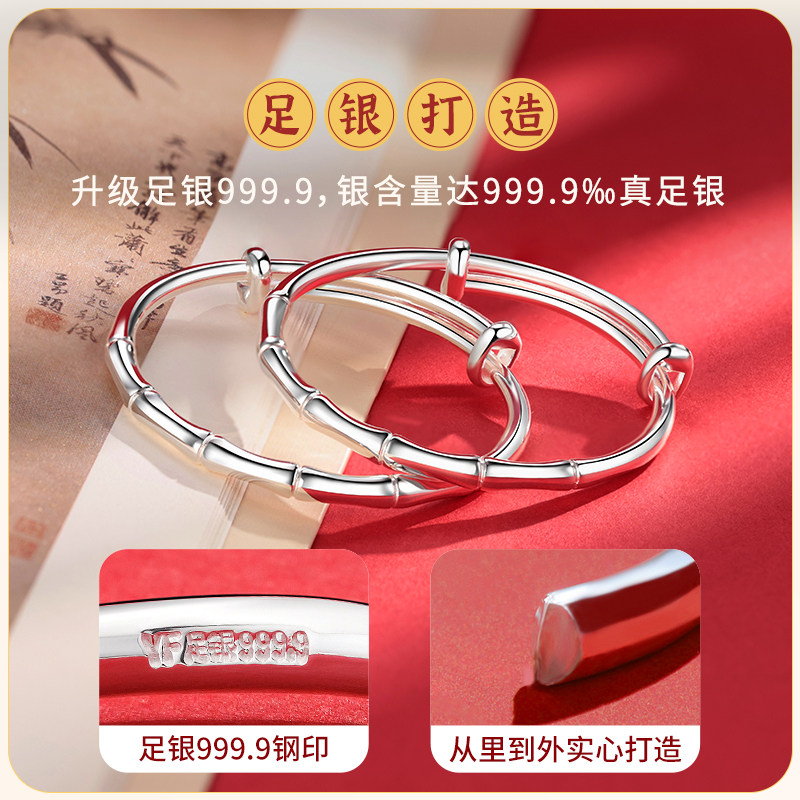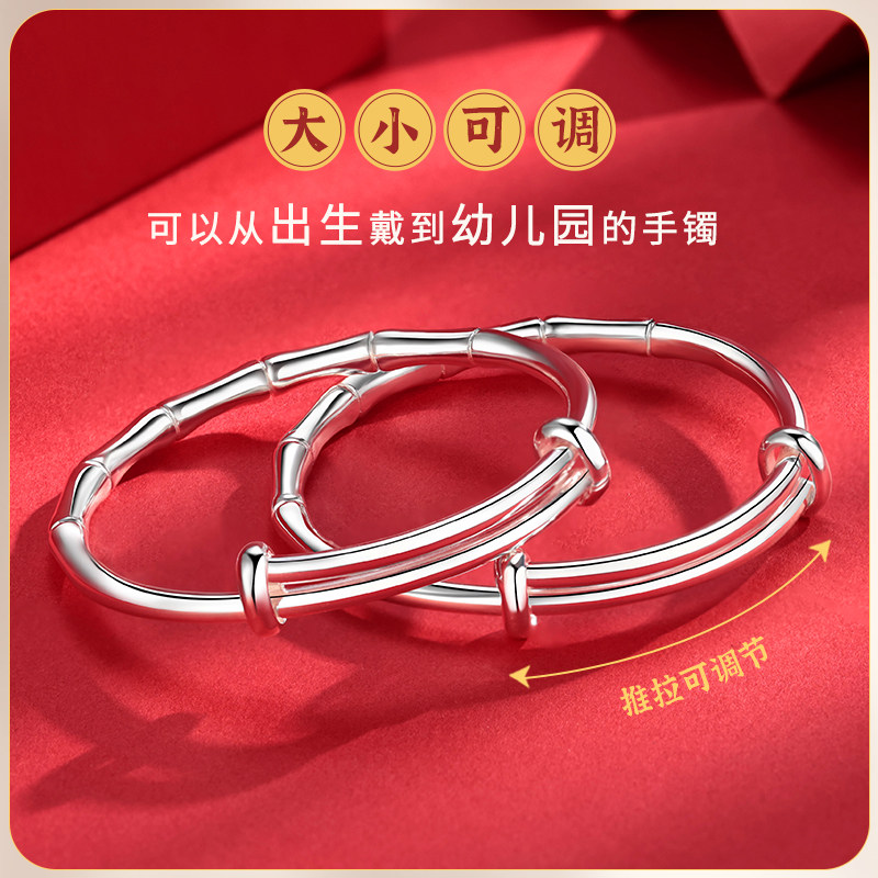 婴幼儿宝宝银手镯婴儿一对2025新款竹节银镯子9999纯银满月礼银饰