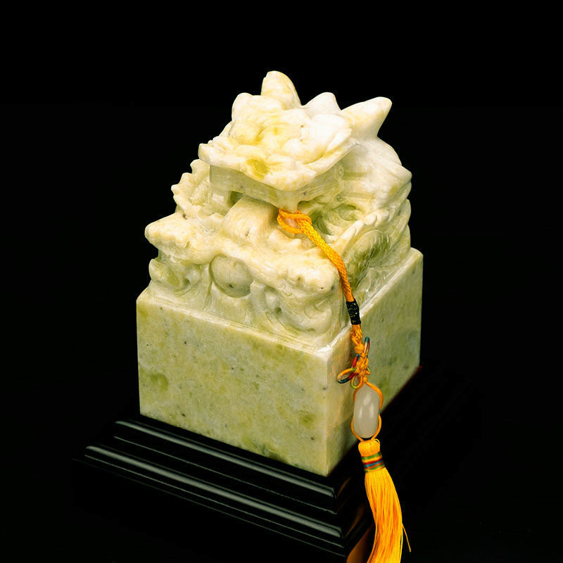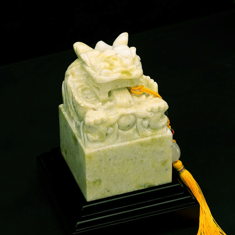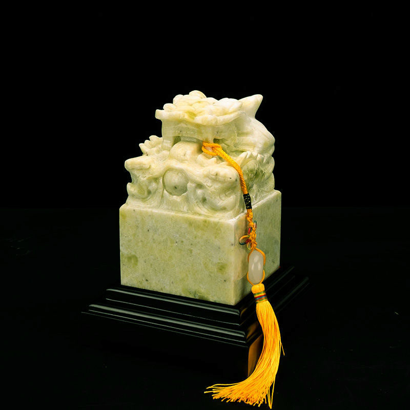 旺福莱蓝田玉盘龙玉玺印章中华龙印玉印办公桌面书房家居装饰摆件