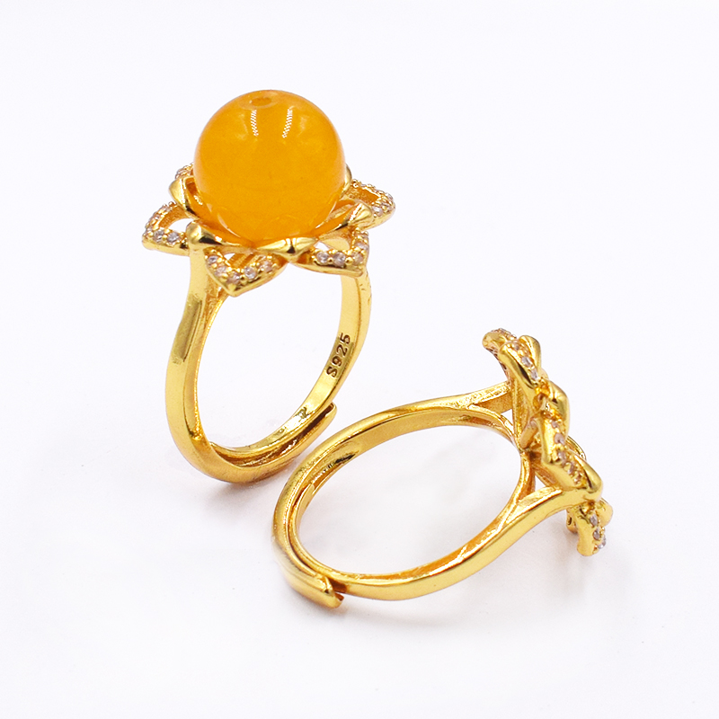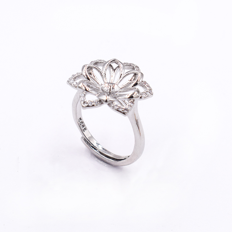 DIY配件新款s925纯银精工花朵珍珠戒指开口指环时尚空托 半成品女