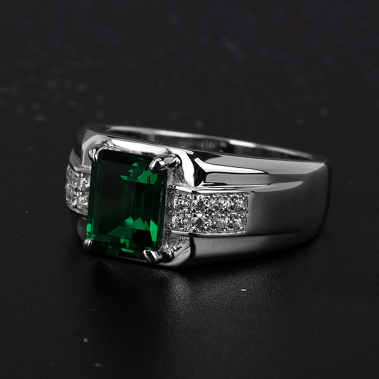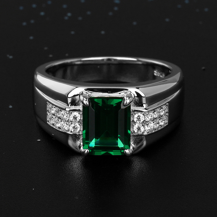 祖母绿碧玺色绿尖晶男士戒指纯银镀白金时尚男款时尚指环免费刻字
