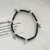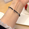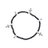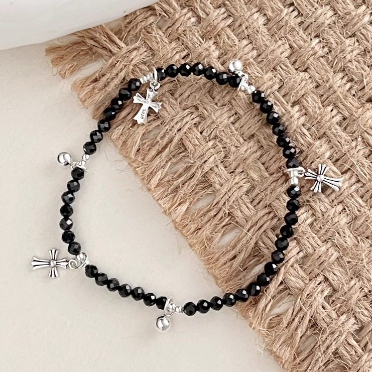 梦猫饰物s925纯银十字架圆珠黑色尖晶石手链女手工款复古百搭手环