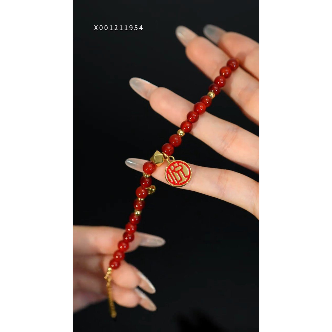 旭平复古元素气质设计感易搭红色仿玉手链新年氛围感手串