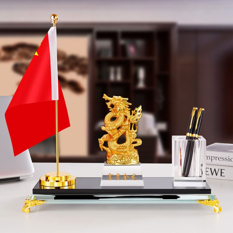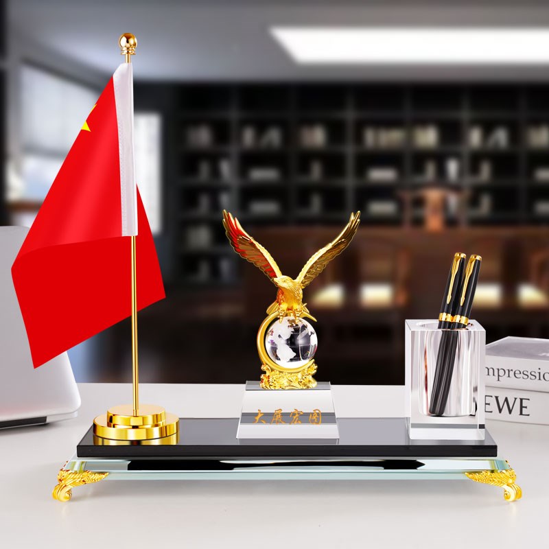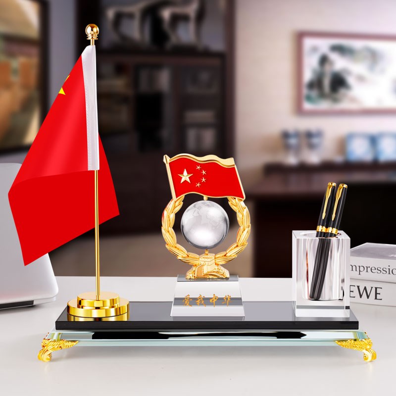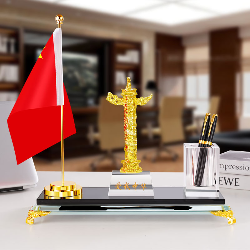 办公桌装饰摆件家居高档党旗国旗送领导桌面水晶笔筒中华柱华表柱