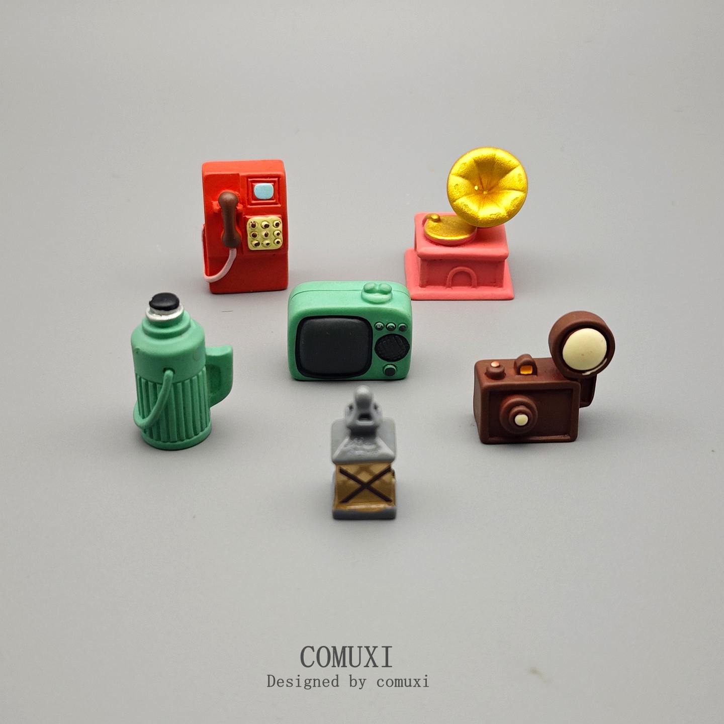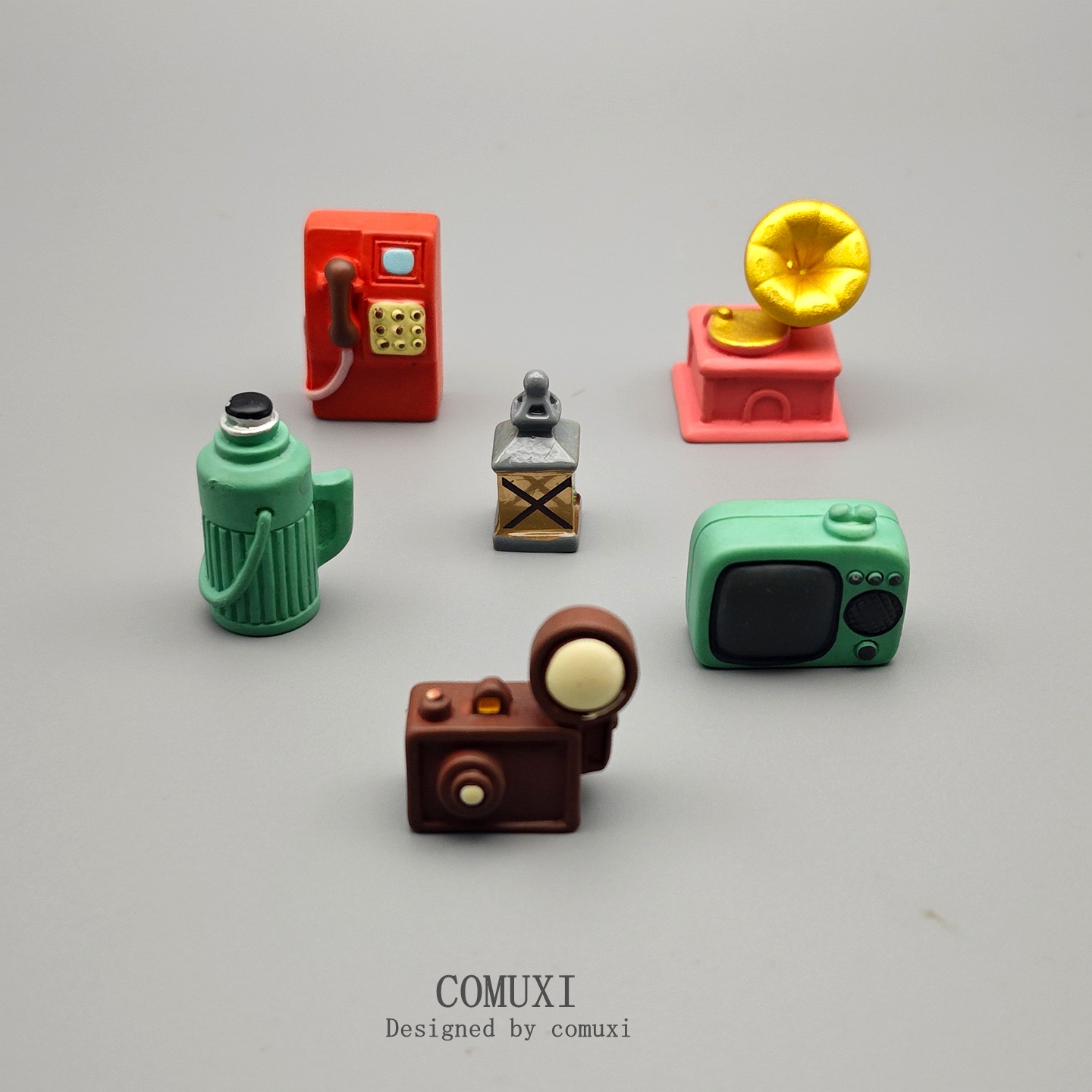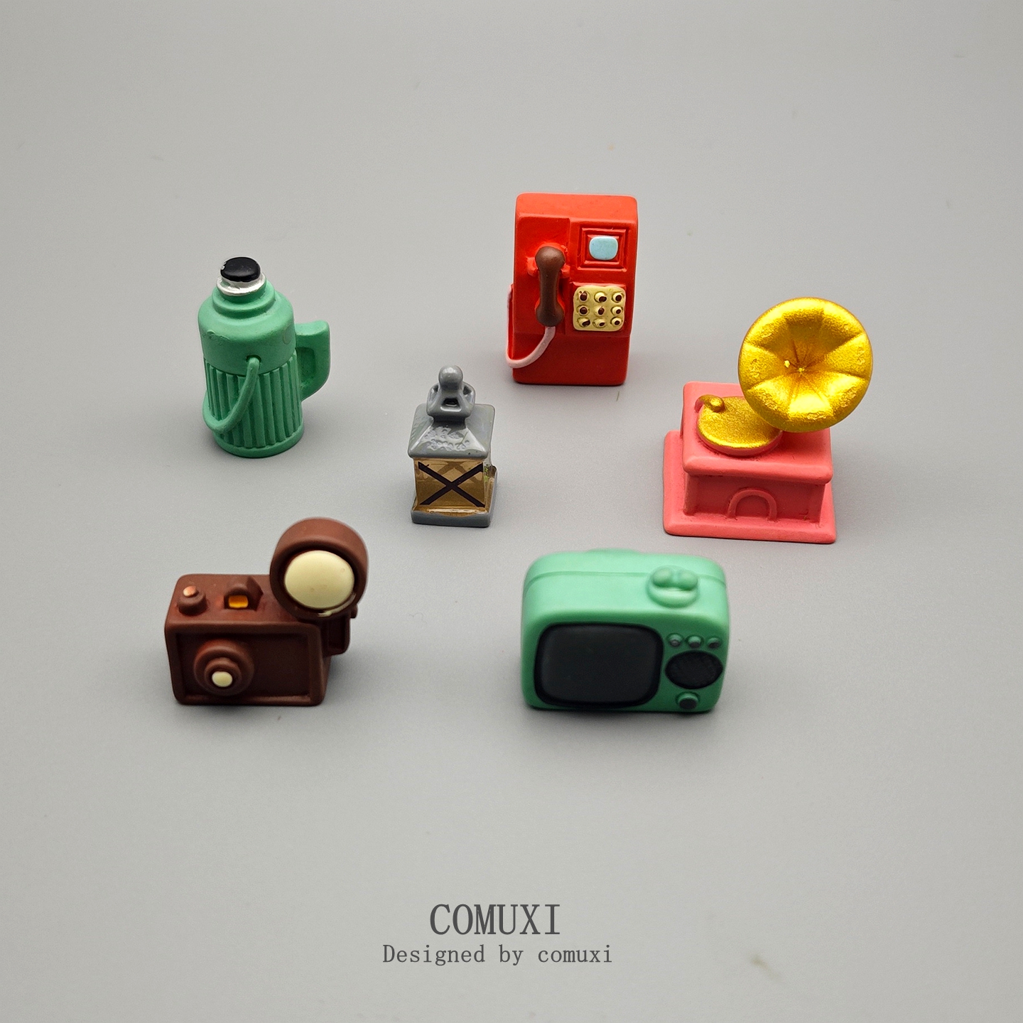 微缩摆件复古怀旧唱片机电视 保温壶小模型树脂桌面装饰娃娃屋diy