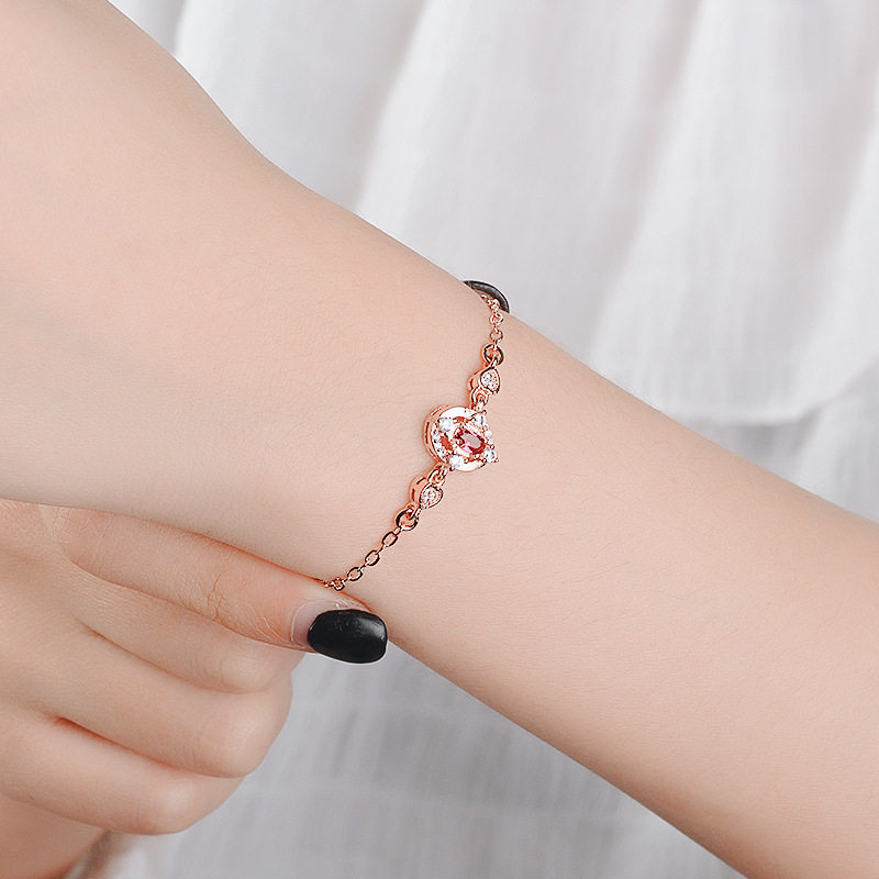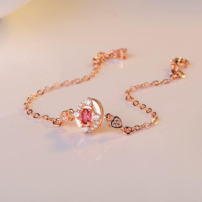 Young彩宝系列 韩版奢华高贵创意镶嵌红色宝石手链女镀银饰品