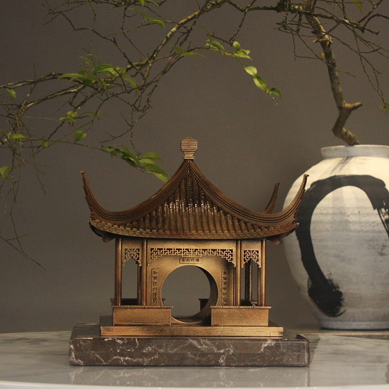 古铜色新中式木质古建筑模型摆件手工艺拼装软装吊饰品摆挂件