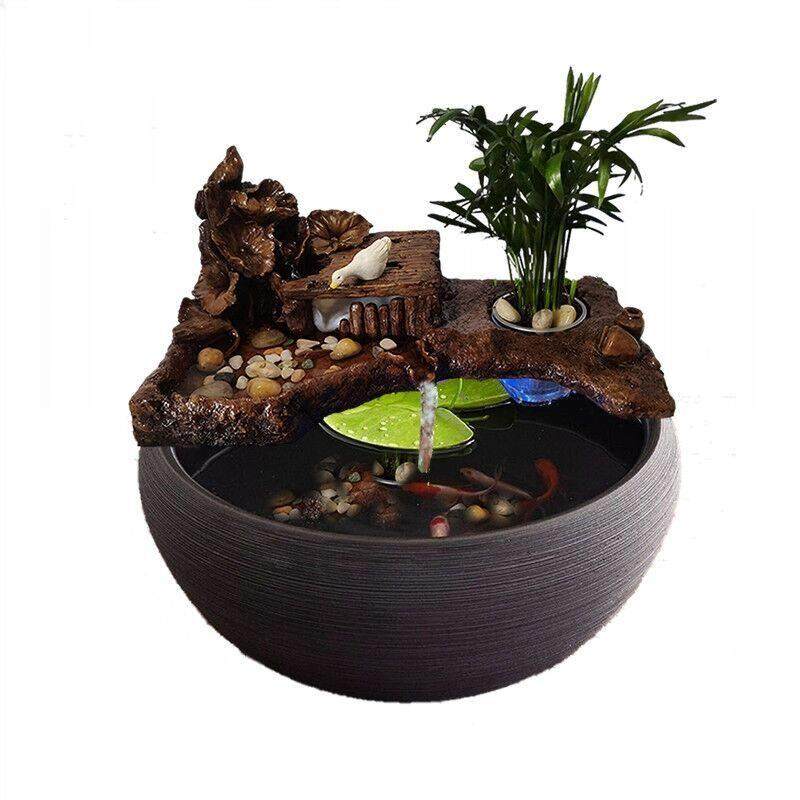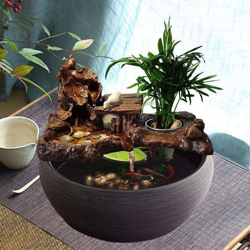 循环流水增氧鱼缸鱼盆过滤器圆形瀑布喷泉造景陶瓷家用装饰品摆件