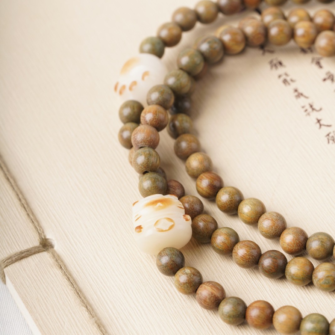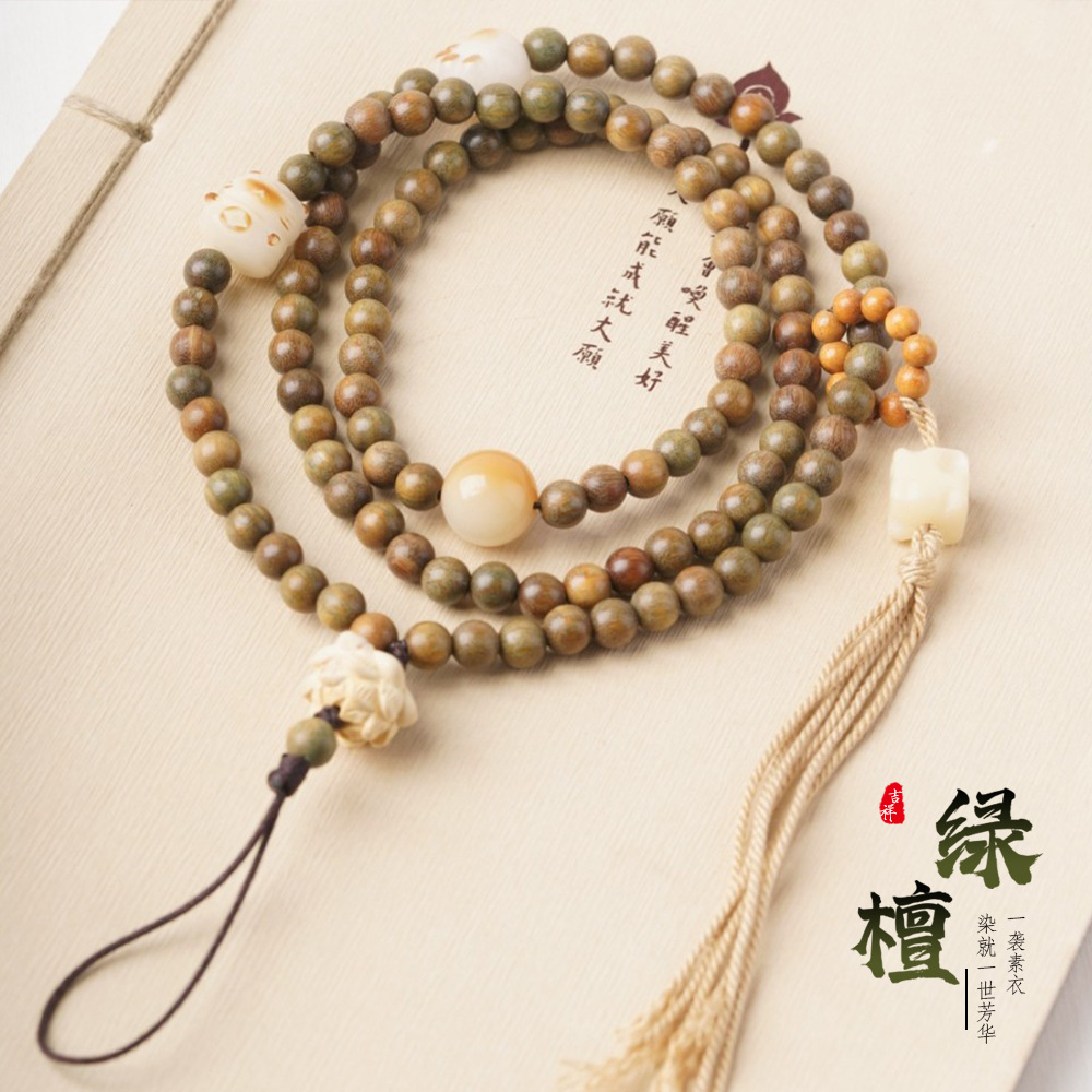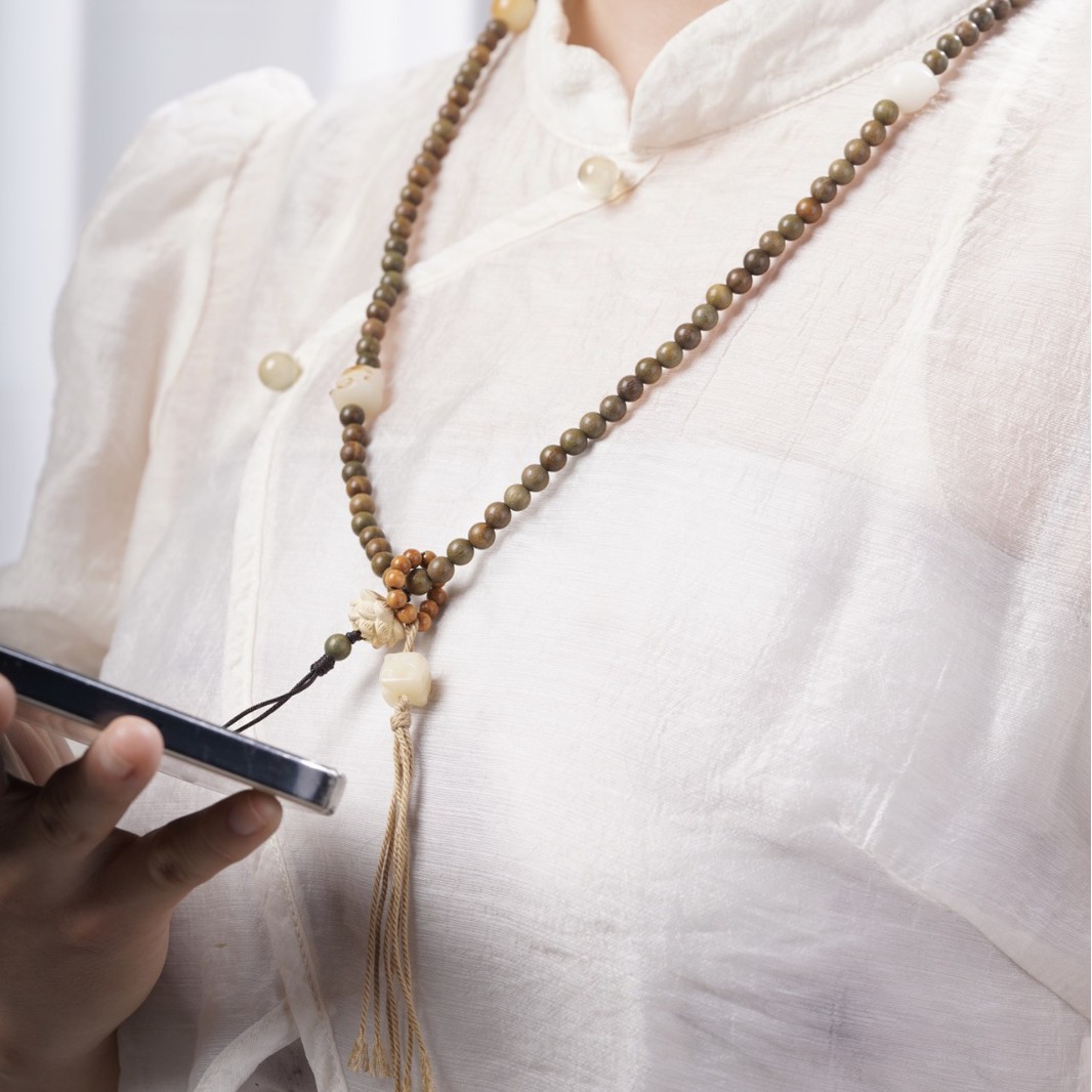 新中式长款挂脖手机挂绳绿檀木搭菩提猫爪串珠手机链跑环莲花手持