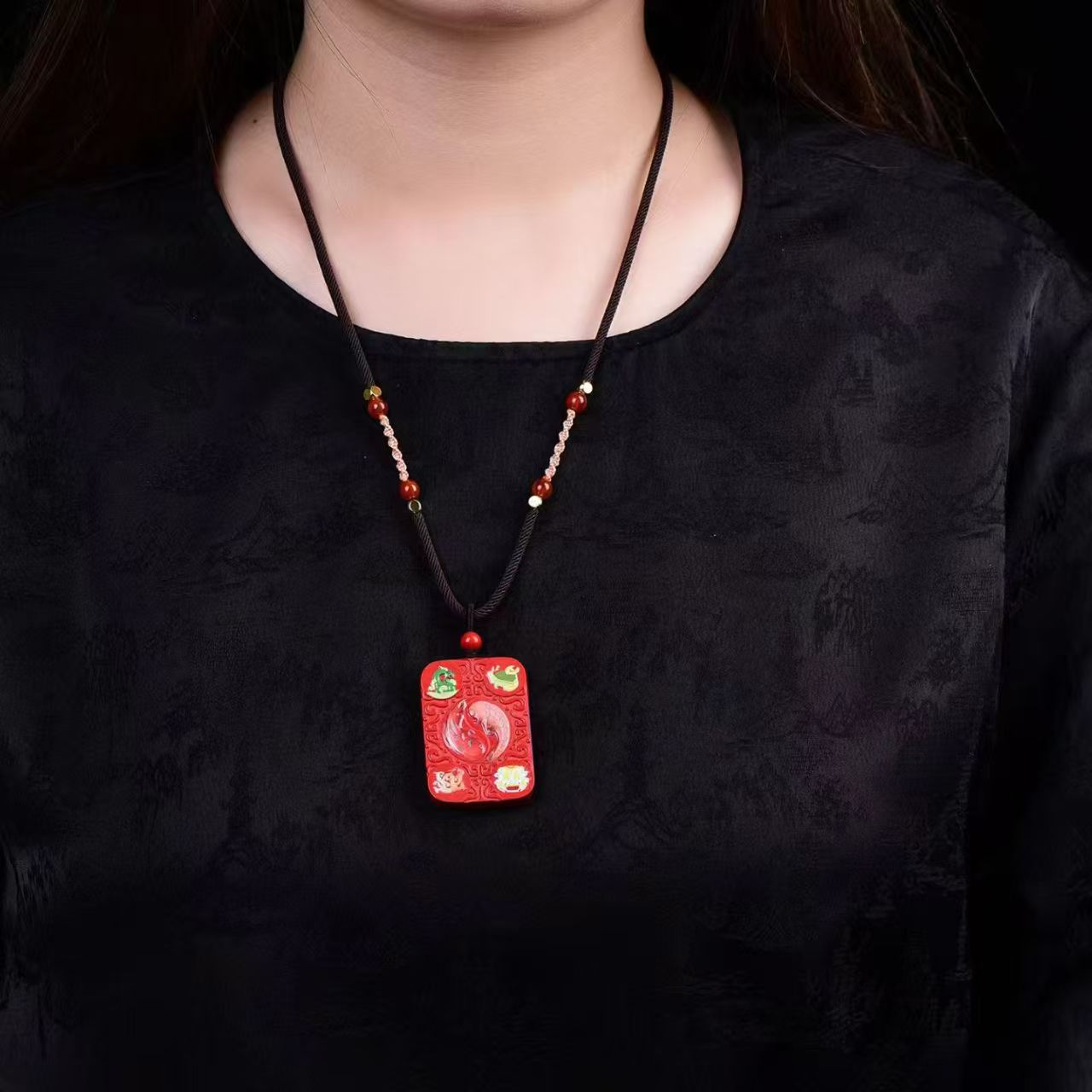 正品保真朱砂毛衣链彩绘文昌塔吊坠男女同款吊坠朱砂吊坠项链