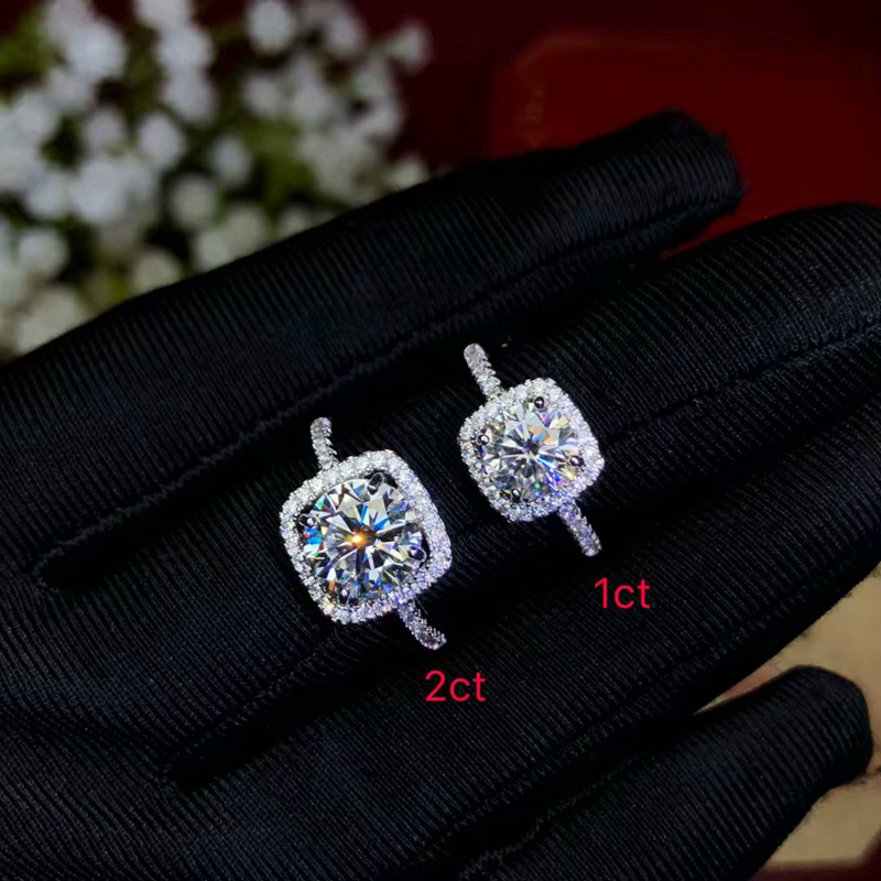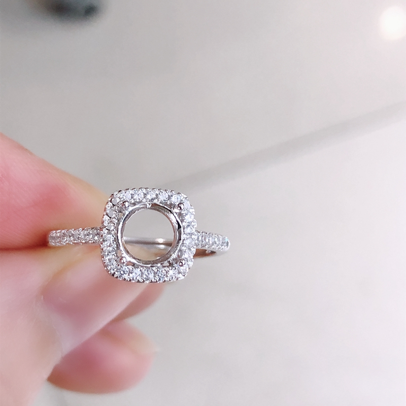 S925银公主方包钻戒戒指成品 空托圆6.5圆7圆8mm镶嵌莫桑钻瑞士钻