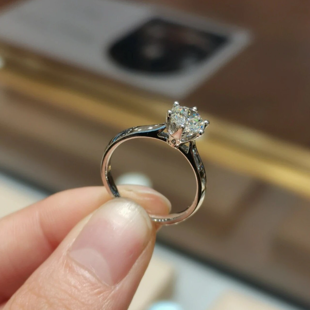 皇冠六爪戒指实验室培育高端莫桑石钻戒钻石婚戒求婚印记AU750