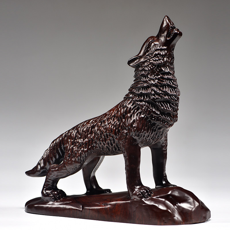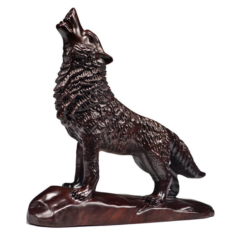 黑檀木雕狼摆件实木狼狗领头狼客厅办公室茶桌家居玄关装饰工艺品