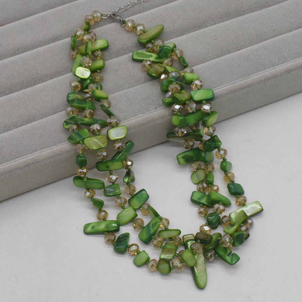 法国CapinKofin时尚森系绿色贝壳多层叠戴项链简约设计感小清新