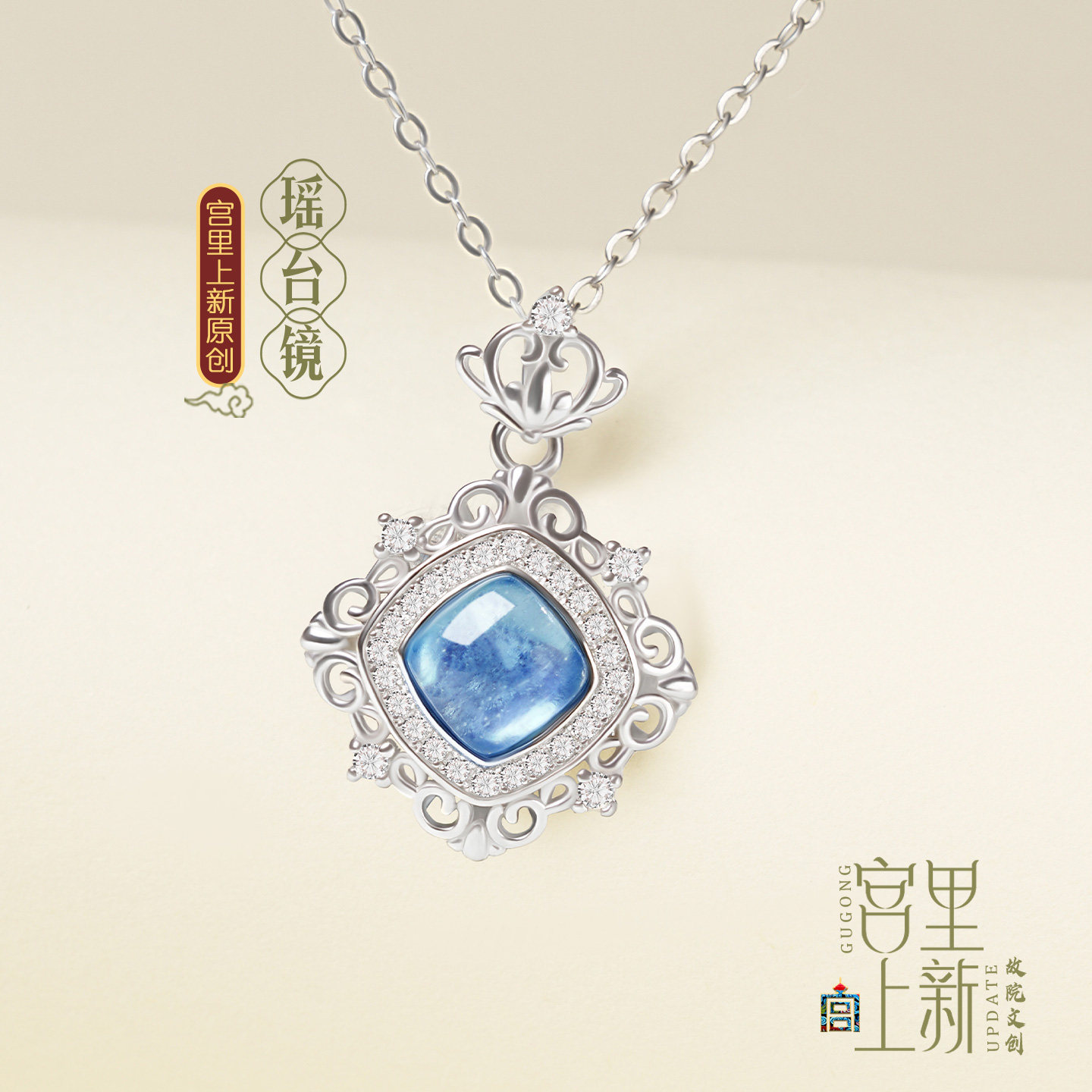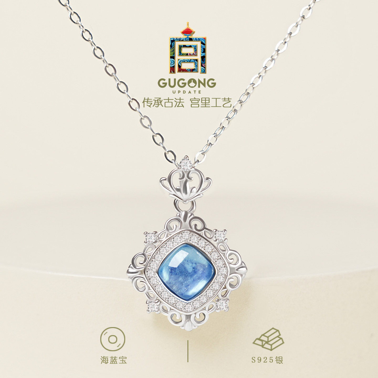 宫里上新海蓝宝项链女天然蓝色水晶吊坠纯银蓝宝石锁骨链生日礼物