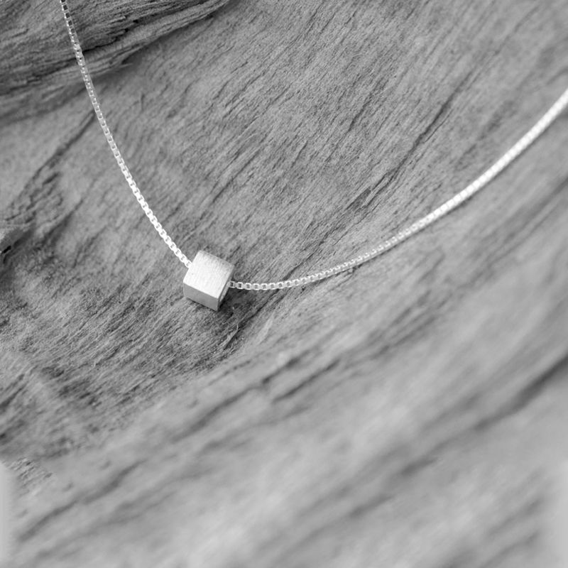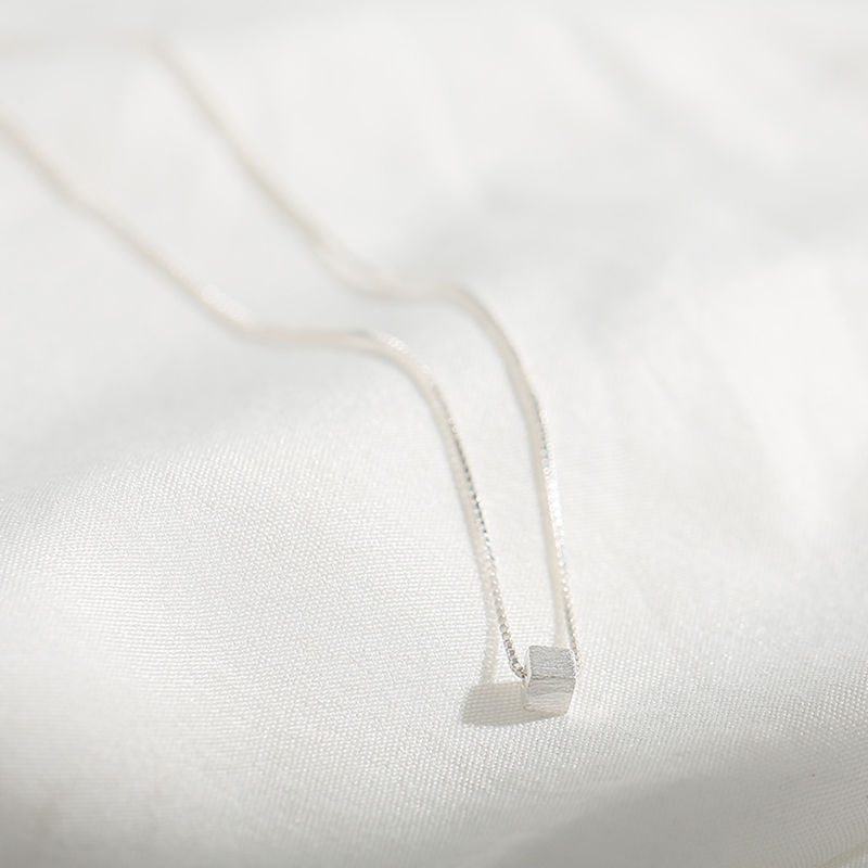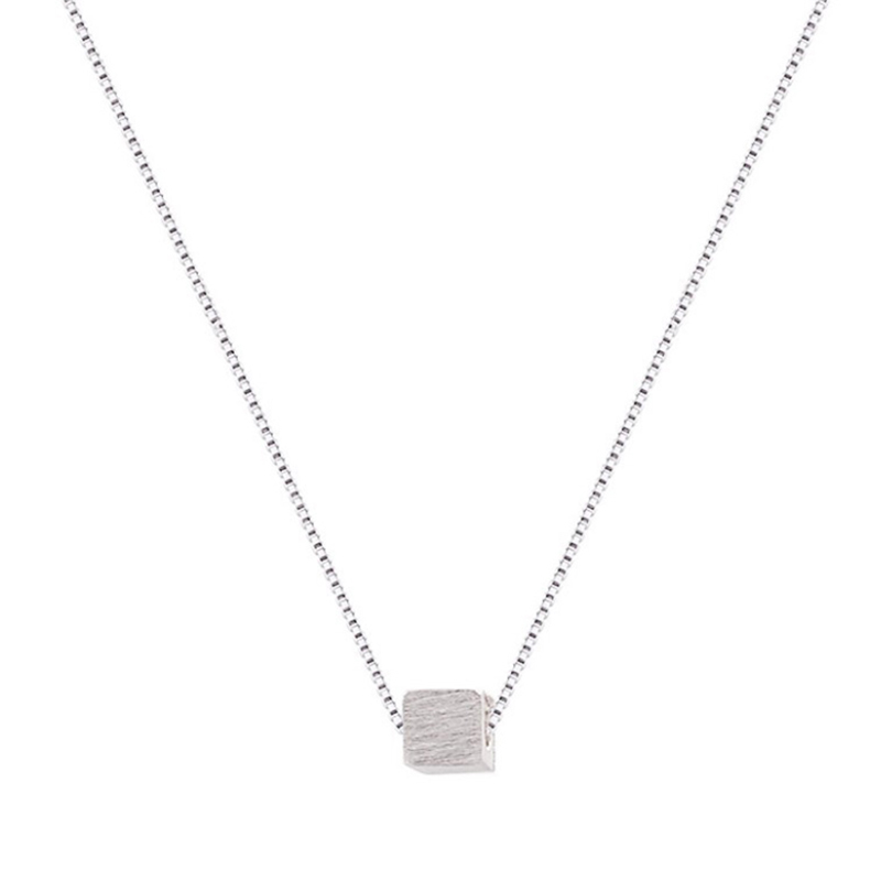 s925纯银项链女韩版简约个性几何方糖吊坠气质颈链时尚百搭锁骨链