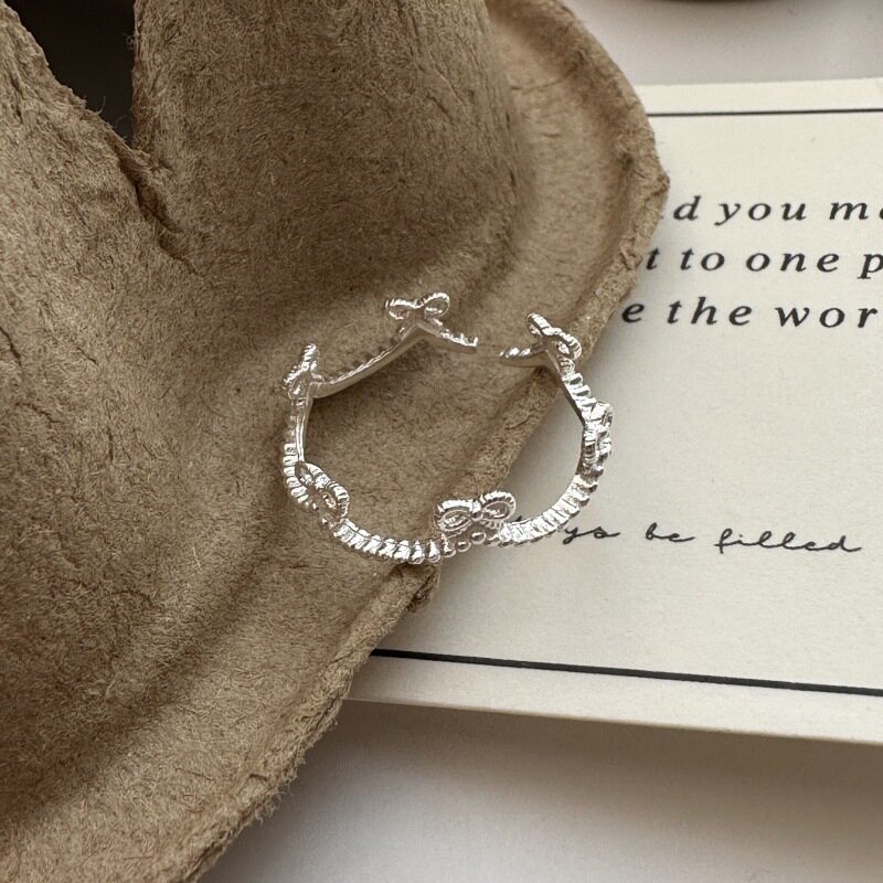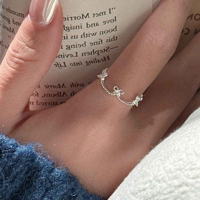 梦猫饰物S925纯银蝴蝶结戒指女可爱甜美风韩式复古简约开口可调节