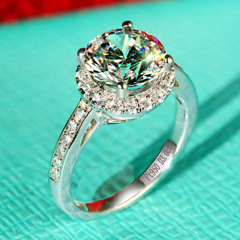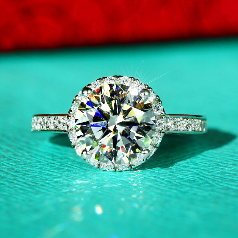 1.5三克拉高碳大钻石仿真钻戒女纯银pt950白金结婚情侣戒指莫桑石
