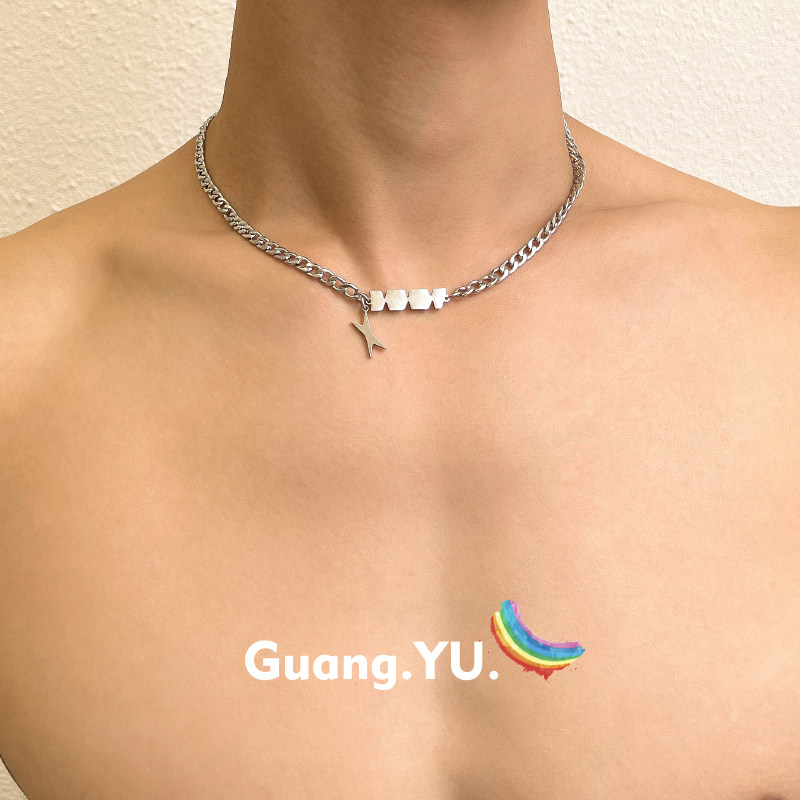 GuangYu高级感芒星项链男小众冷淡风钛钢锁骨链女嘻哈古巴链潮牌