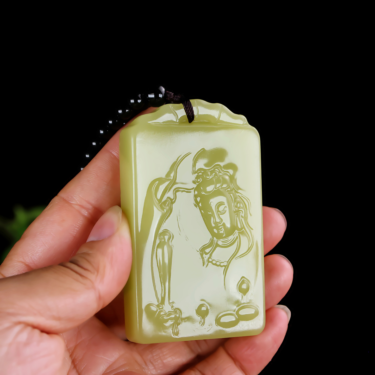 精雕和田玉观音大号平安牌挂件手把件黄口料玉石观音菩萨玉佛