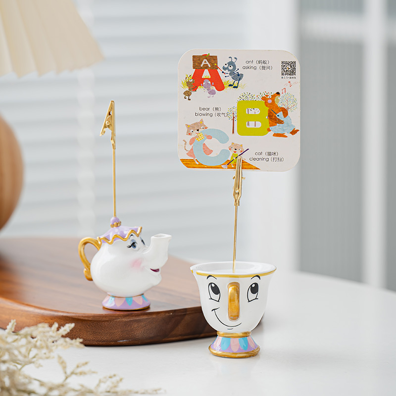 迪士尼茶壶太太阿奇便签照片夹卡片名片明信片立式可爱留言便签夹