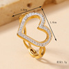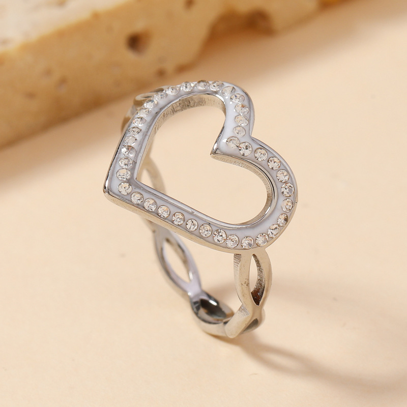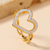 跨境不锈钢饰品时尚轻奢连口切割镶泥钻爱心戒指女心形钛钢戒指