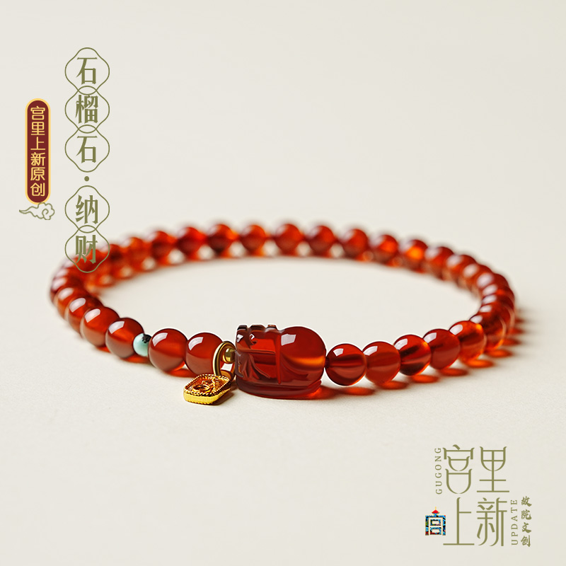 宫里上新石榴石手串女款纯天然正品红色水晶貔貅招财手链生日礼物