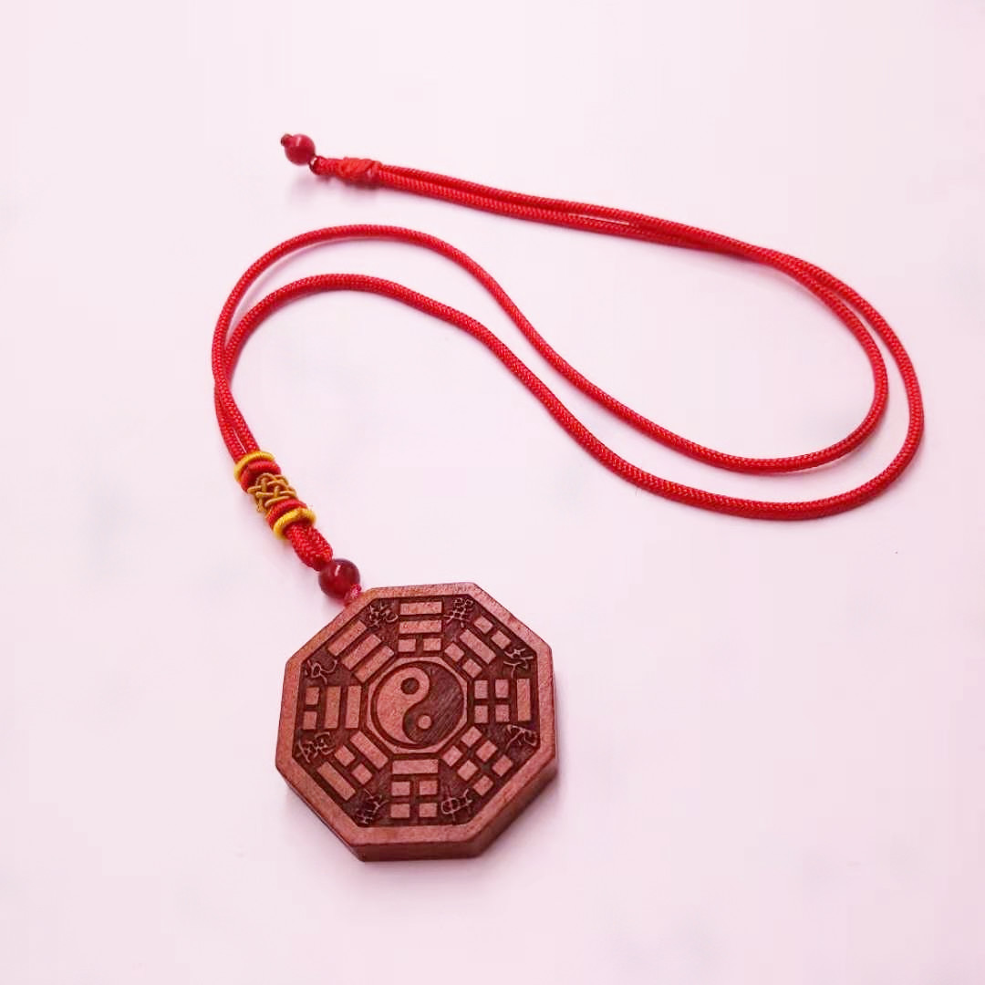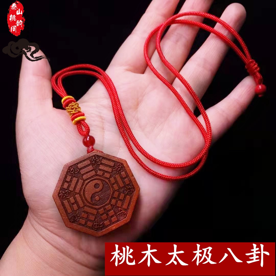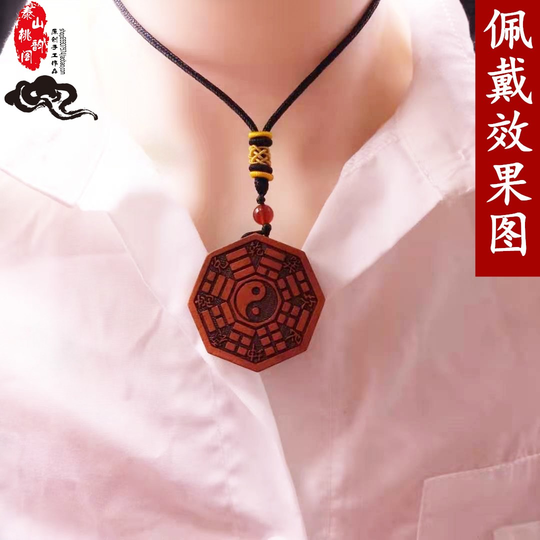 桃木阴阳鱼九宫八卦镜吊坠太极图平安男女项链本命年