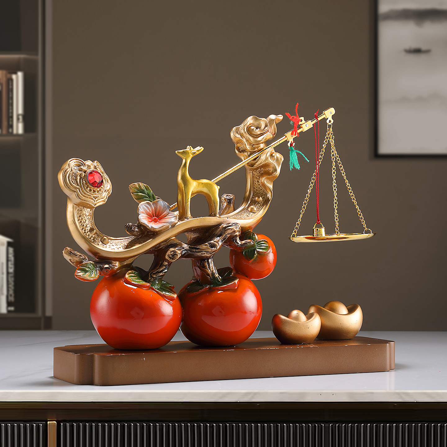 柿柿称心如意柿子摆件客厅玄关电视柜酒柜装饰品搬家乔迁新居礼物