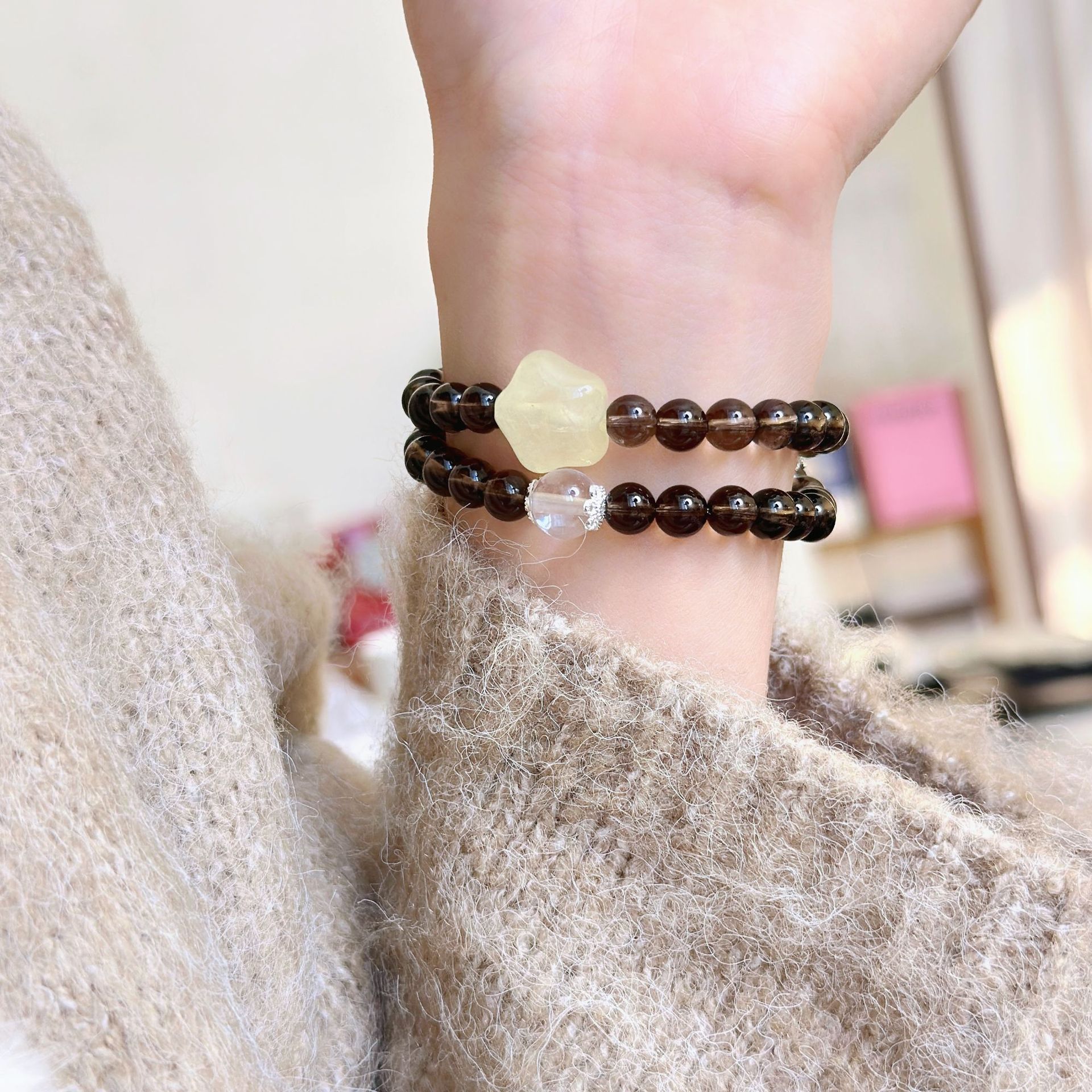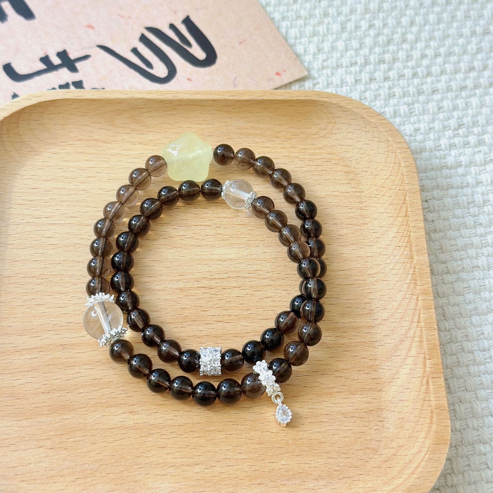 日本品质茶晶手链diy手工圆珠黄水晶天然水晶手串爆款饰品新款手