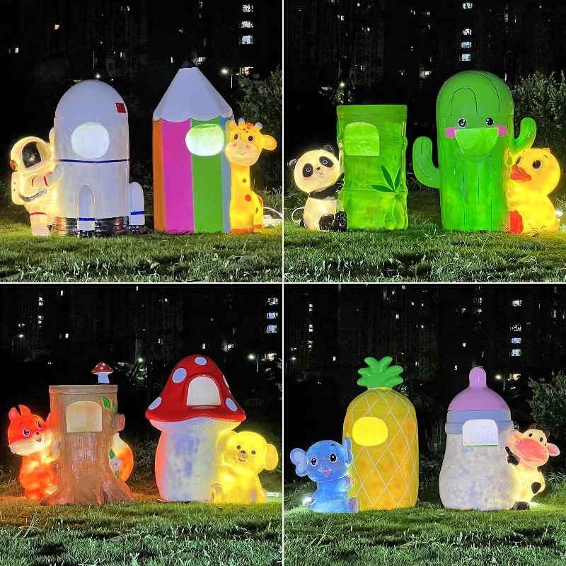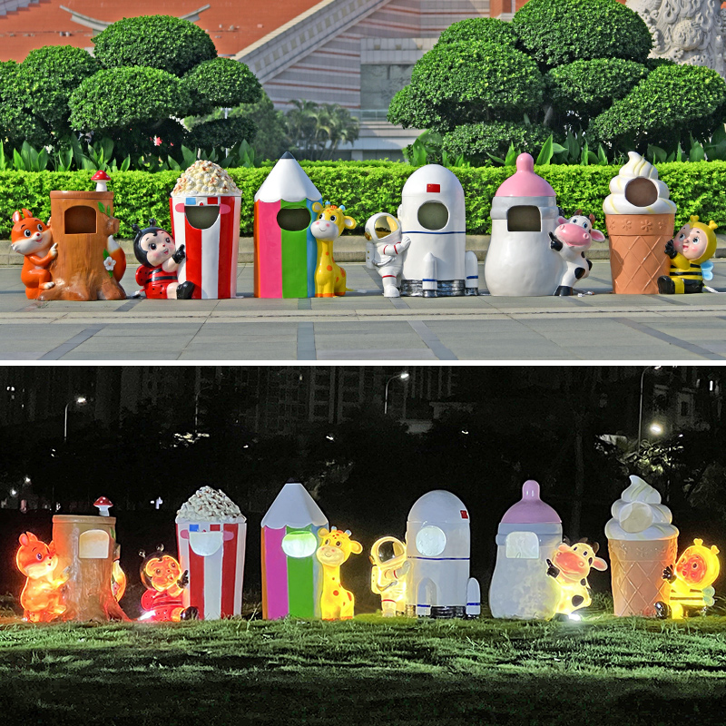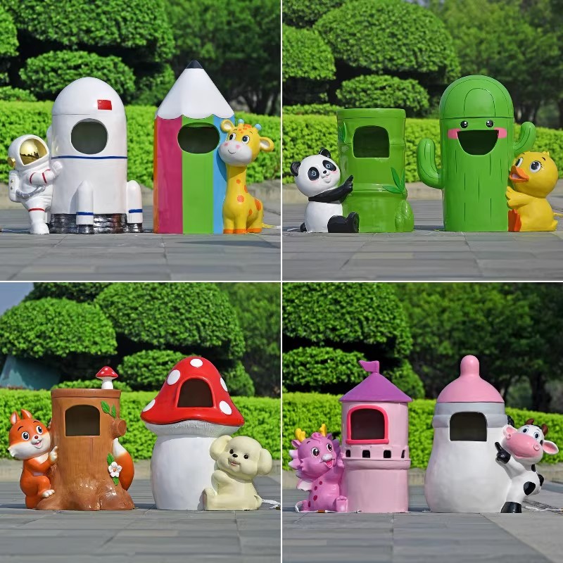 户外卡通动物垃圾桶玻璃钢雕塑发光摆件公园风景区幼儿园装饰美陈
