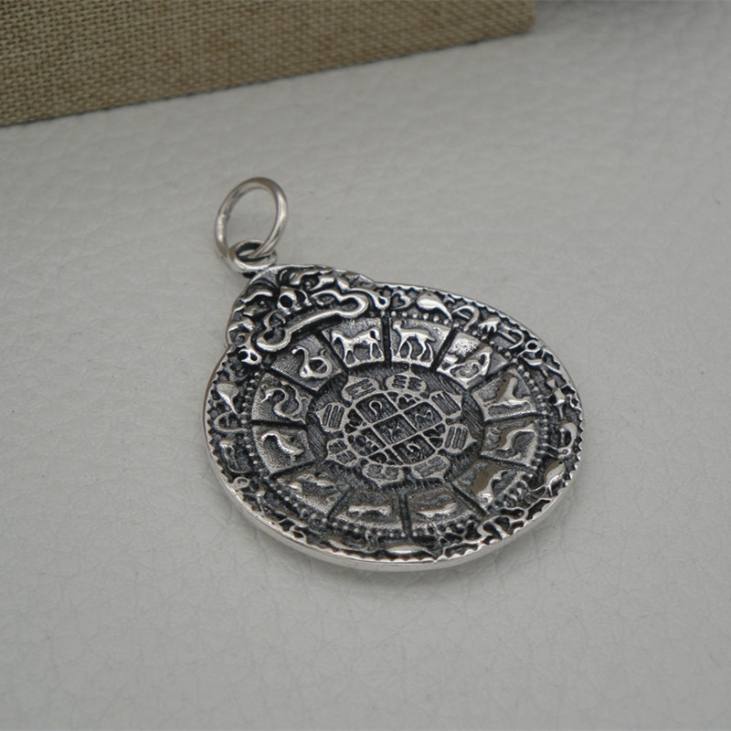 九宫八卦牌项坠S925纯银吊坠复古十二生肖吊牌男女士时尚潮流饰品