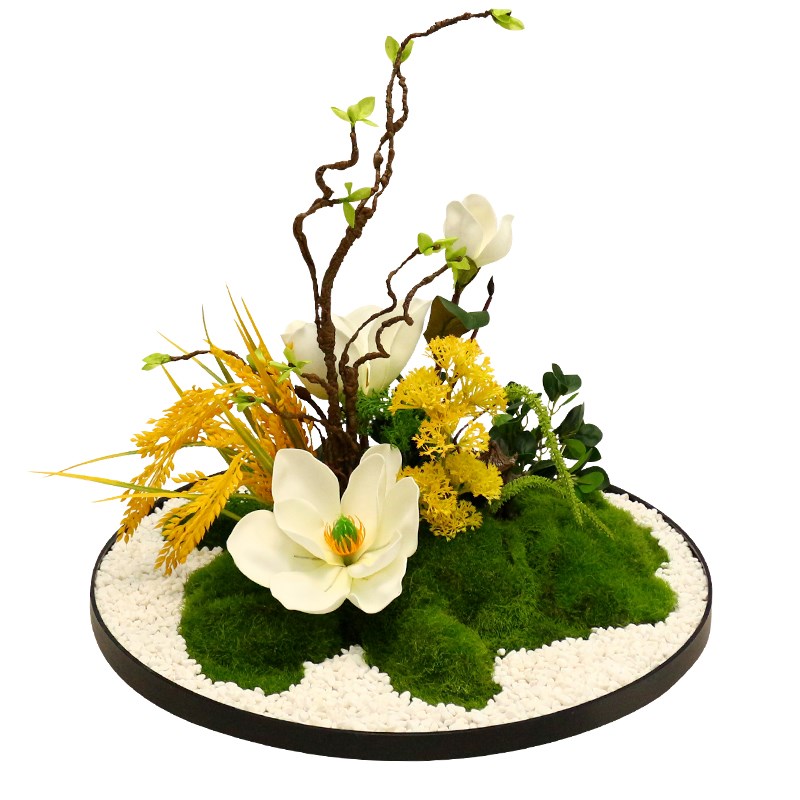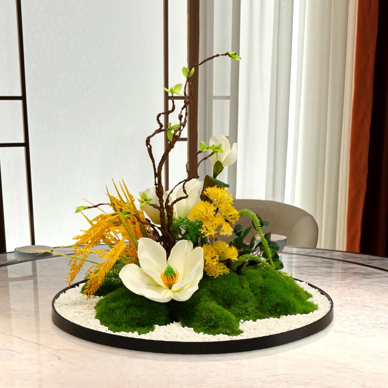 新中式酒店大圆餐桌n中间摆花高端餐厅电动转盘摆件装饰品景观造