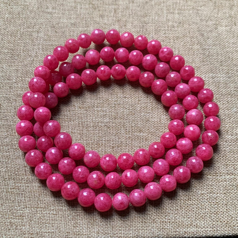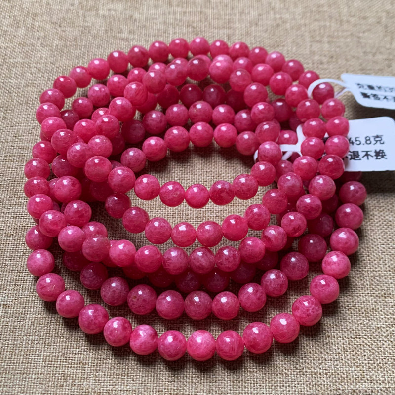天然蔷薇辉石三圈水晶手串一物一图粉红色蔷薇辉晶手链饰品礼物女