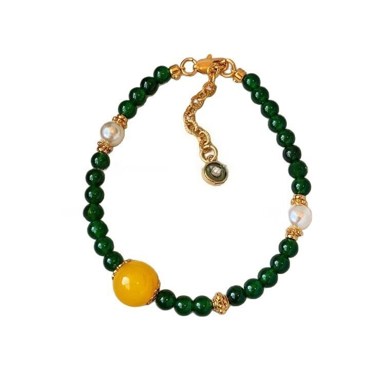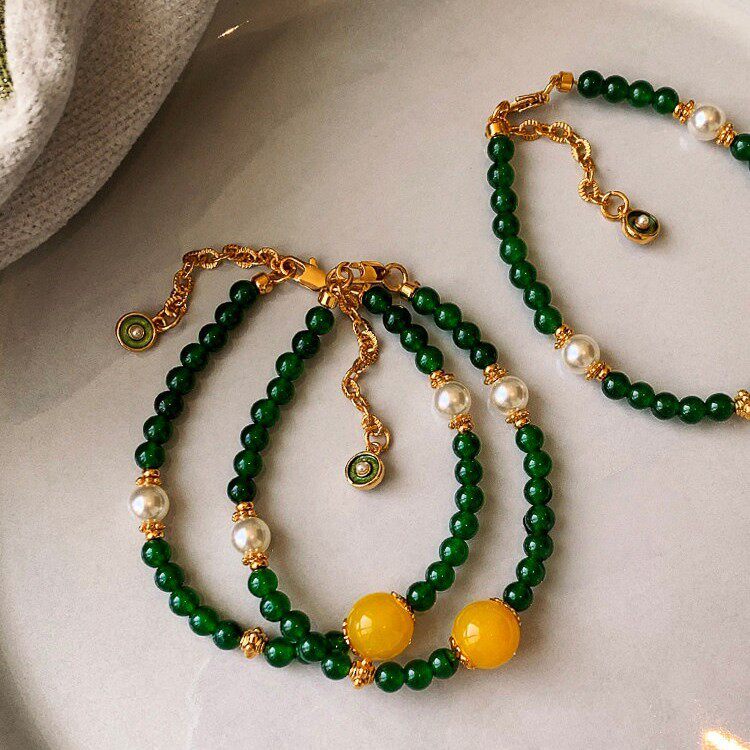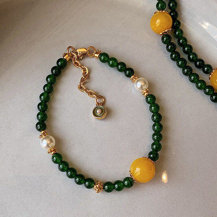 新中式绿玉髓黄色玛瑙串珠手链女仿珍珠轻奢小众精致手串项链套装