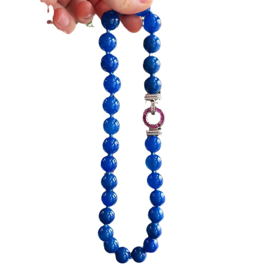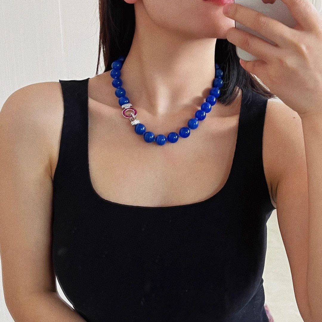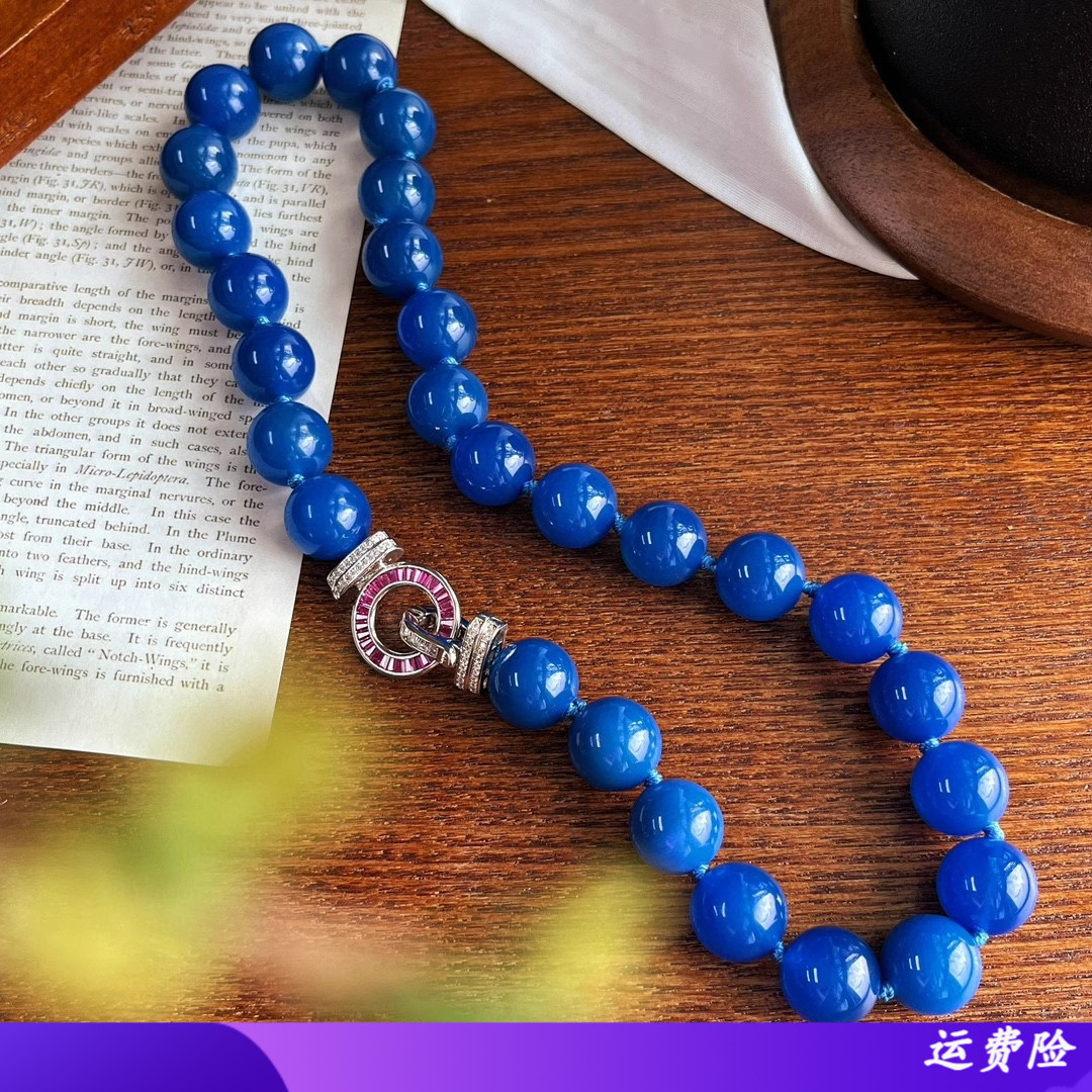 新款 14mm大颗粒深蓝蓝色妖姬蓝玉髓项链颗颗打结小众全新锁骨链