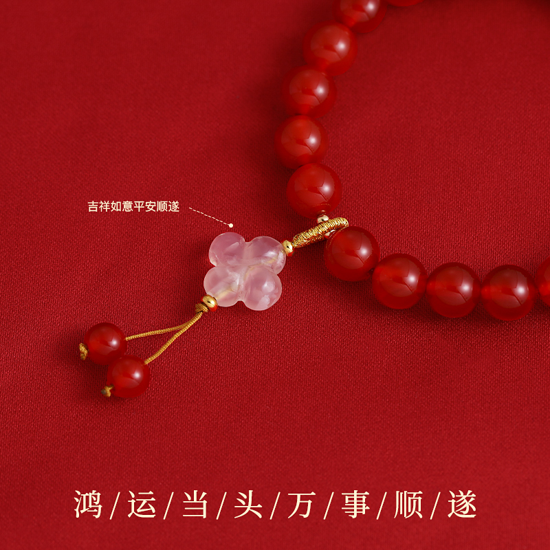 红玛瑙串珠四叶草手链女2025新款手串轻奢小众精致高级感秋冬手饰