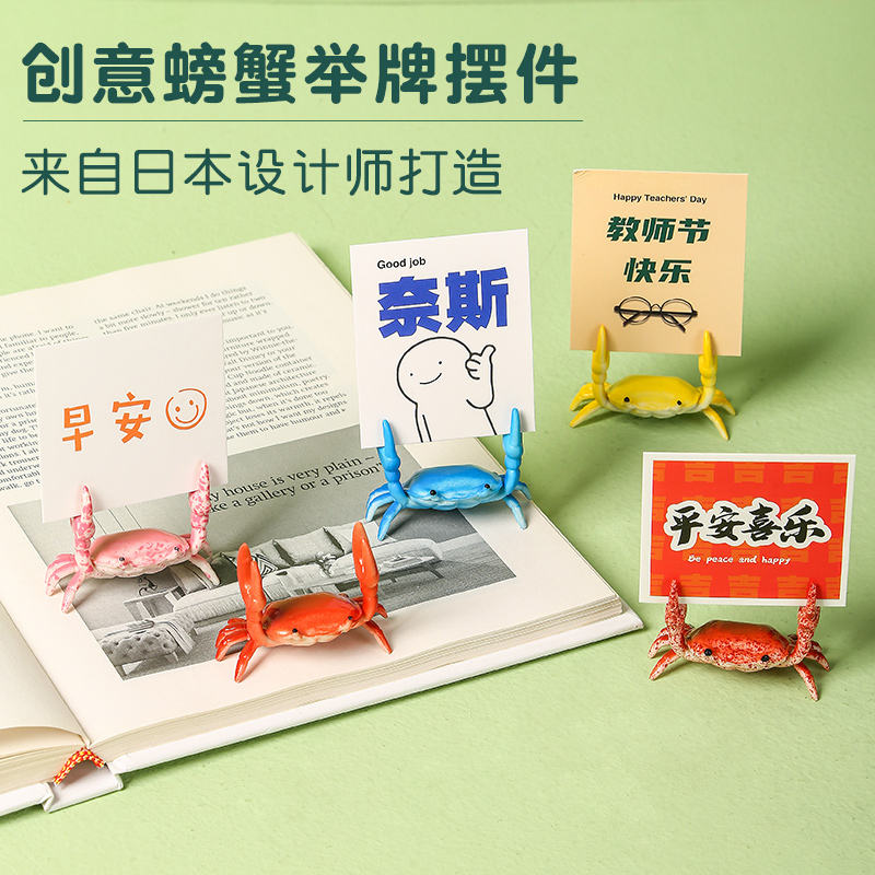 ins风 日式治愈系螃蟹举手小摆件加油励志名片便签夹可爱生日礼物