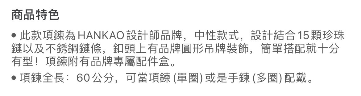 正品 HANKAO PEARL BOY NECKLACE(WHITE)链条拼接白色珍珠项链