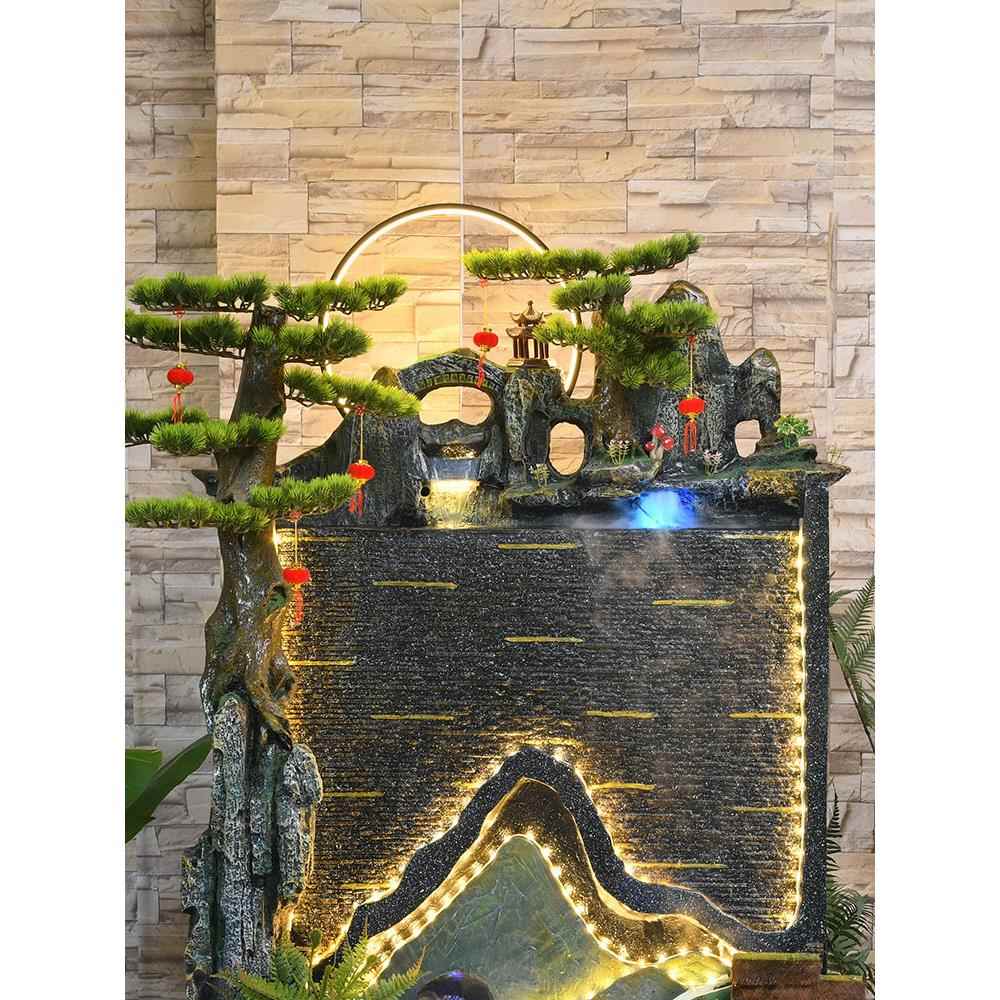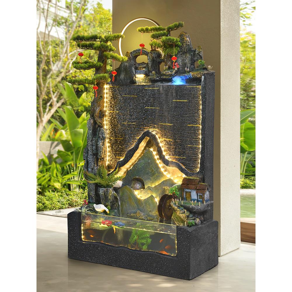 大型落地循环水造景鱼缸 假山流水喷泉瀑布水幕墙家居装饰品摆件