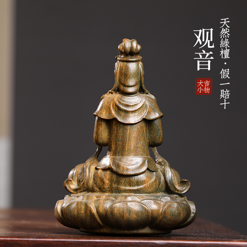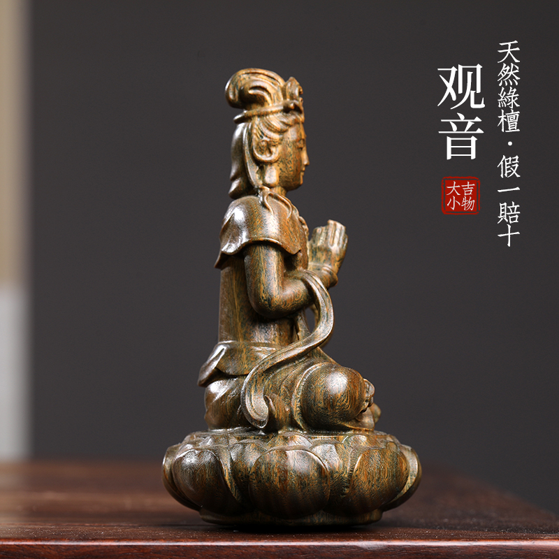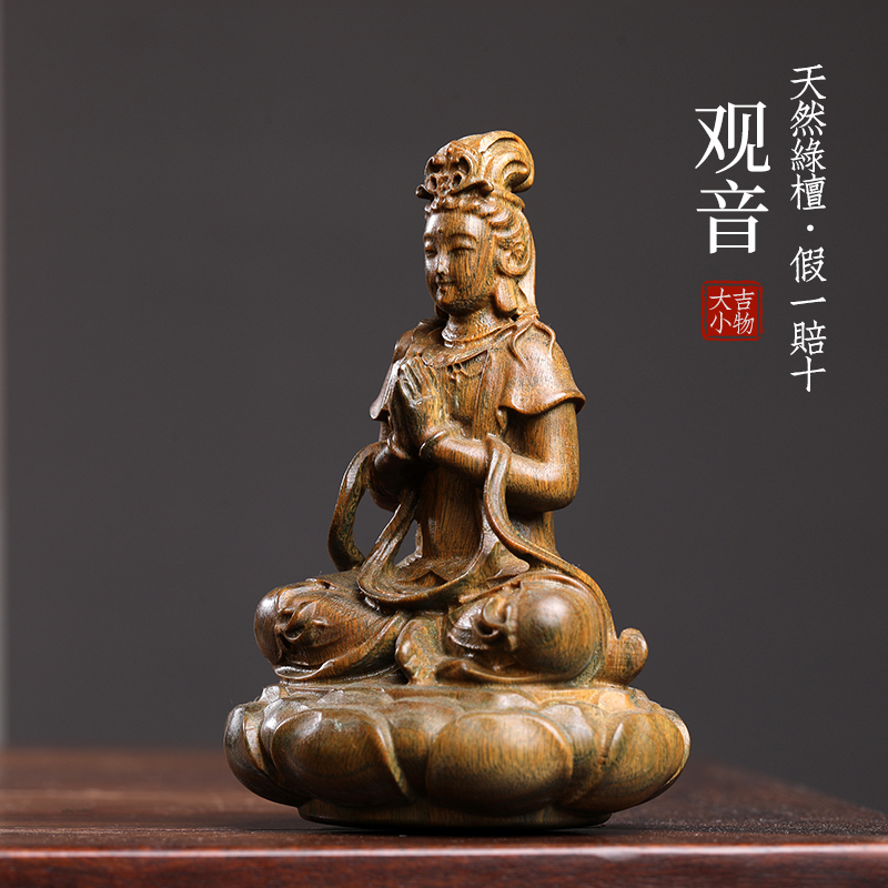 天然绿檀实木雕刻观音菩萨摆件本命佛文玩手把件人物工艺品装饰品