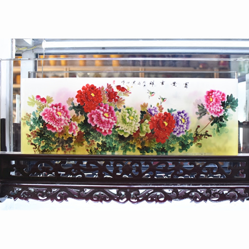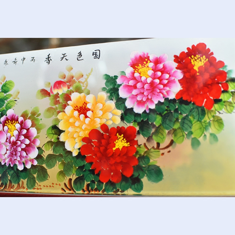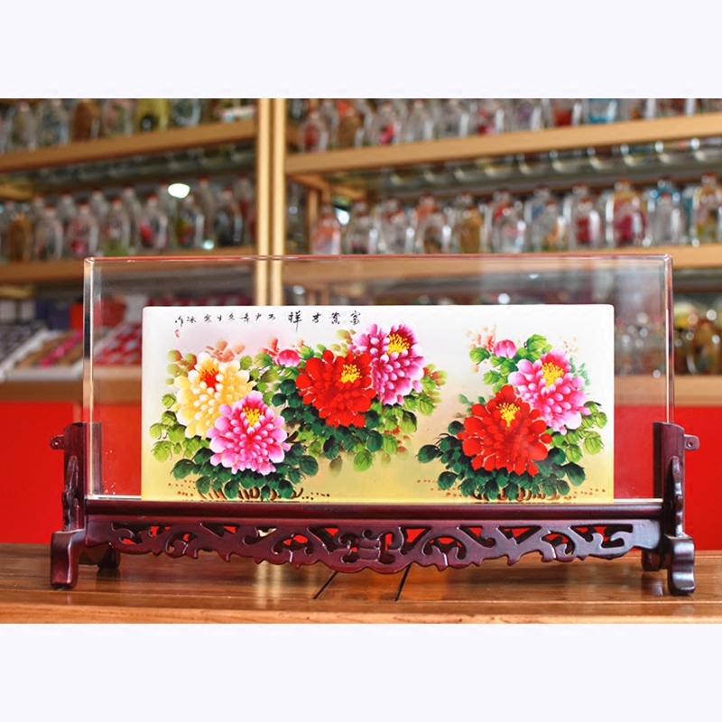 琉璃水晶内画屏风富贵牡丹礼品创意家居装饰品玻璃工艺品新房