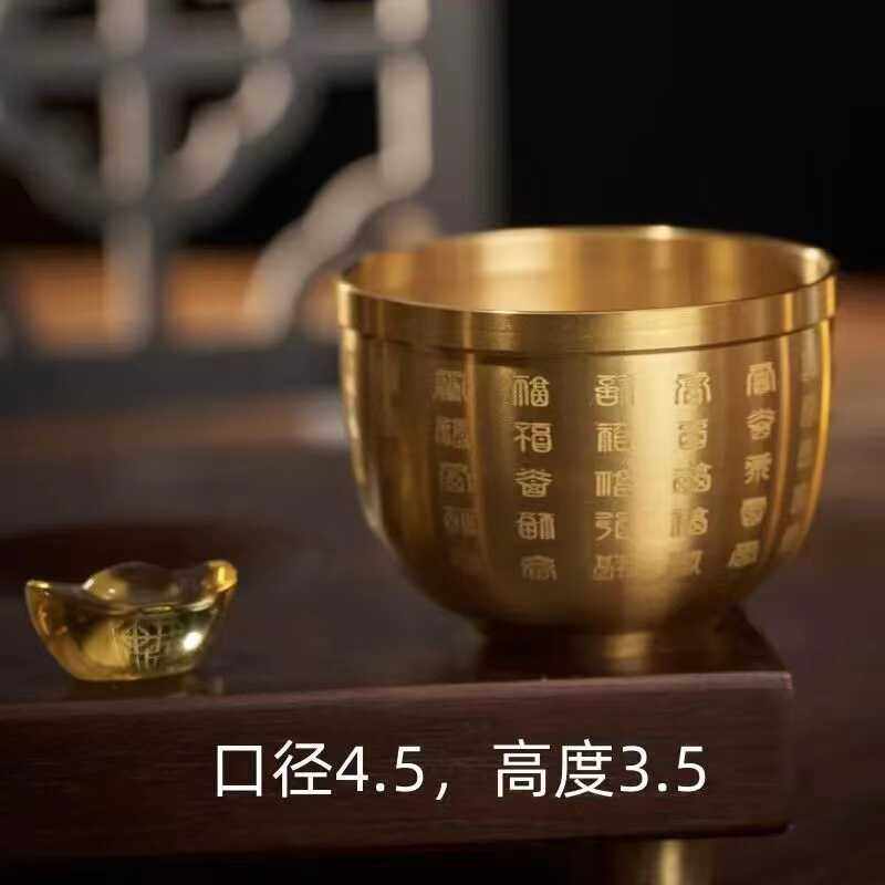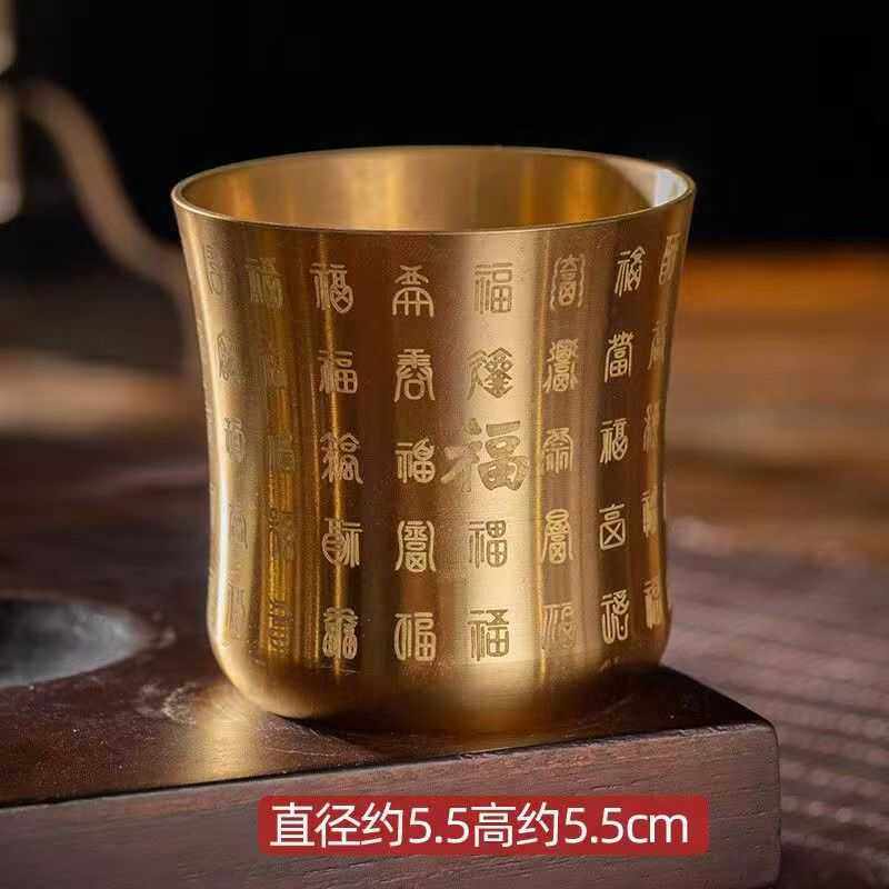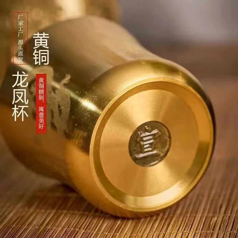 黄铜酒杯纯铜二两白酒杯家用防摔龙凤呈祥百福激光雕刻供福供财神