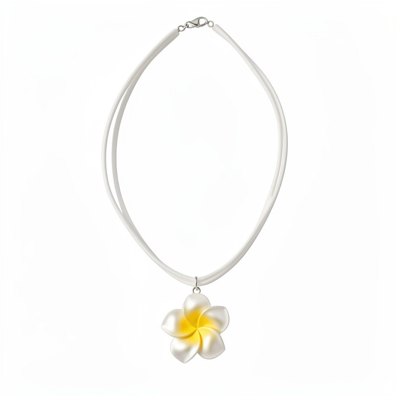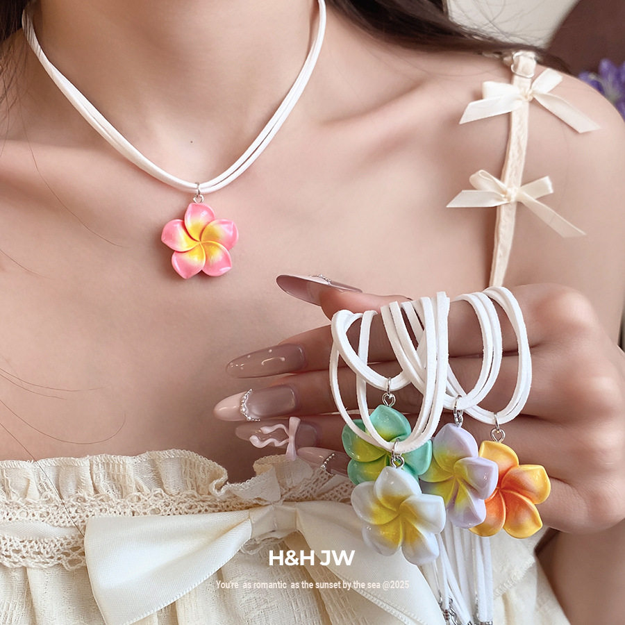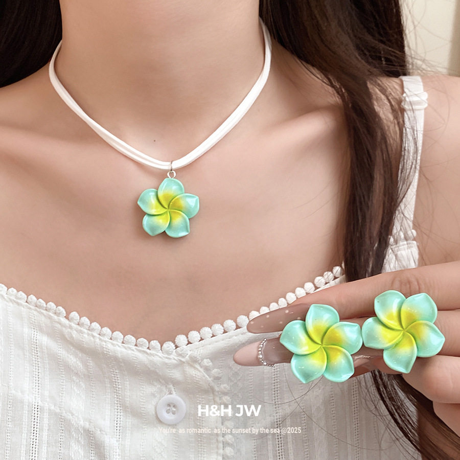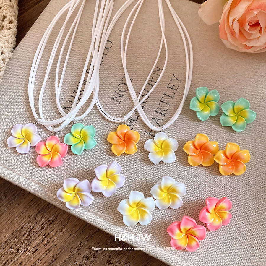 新款多巴胺黄白色花朵吊坠项链耳环夏威夷度假风甜美设计感锁骨链