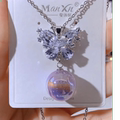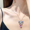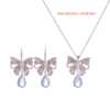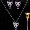 紫色蝴蝶结项链耳环套装饰品甜美气质情侣套装水晶耳饰颈链新耳坠