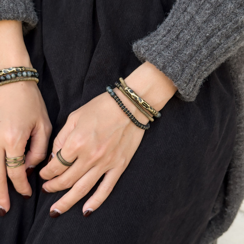 原创复古灰色鹰眼石黑檀木多圈手链男女同款 小众个性新中式饰品